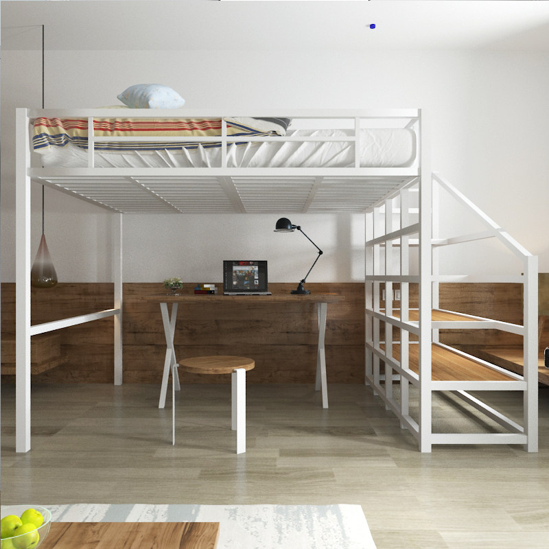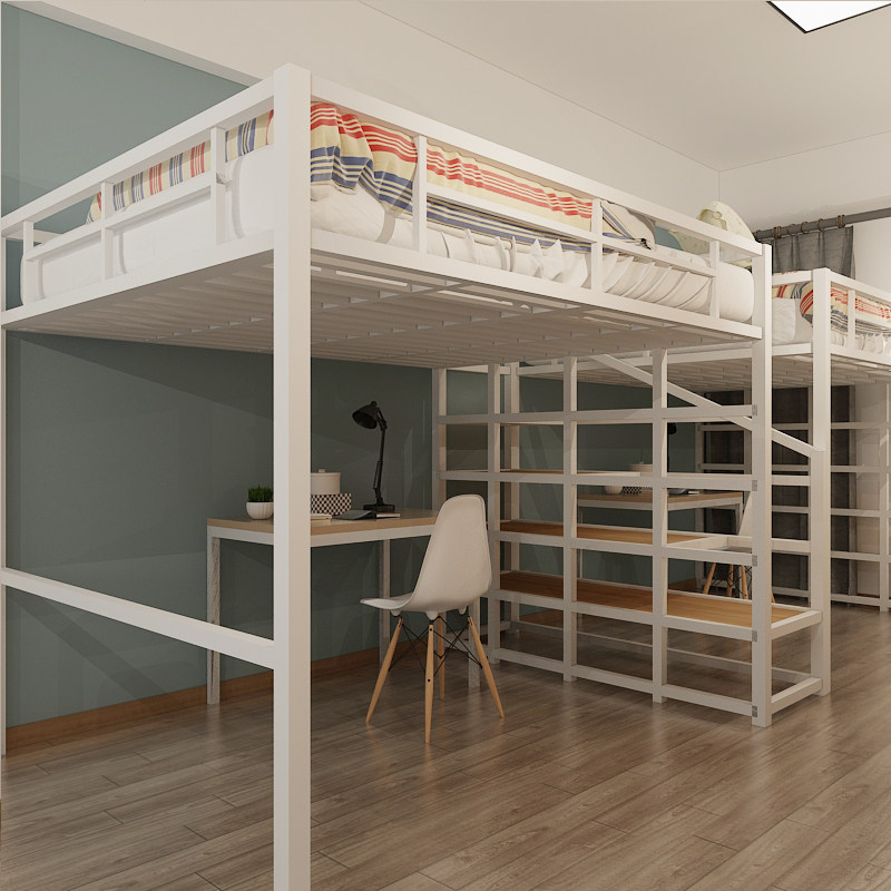 Nordic High Bed Multi-function Dormitory Bed Double Roof Bed Small House Small House Bed Up and Under-Bed Iron-Art Bed