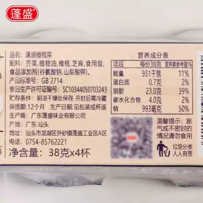 Pengsheng cup olive dish 38g Portable Chaoshan specialty delicious meals served with salty and miscellaneous side dishes with porridge Bibimbap