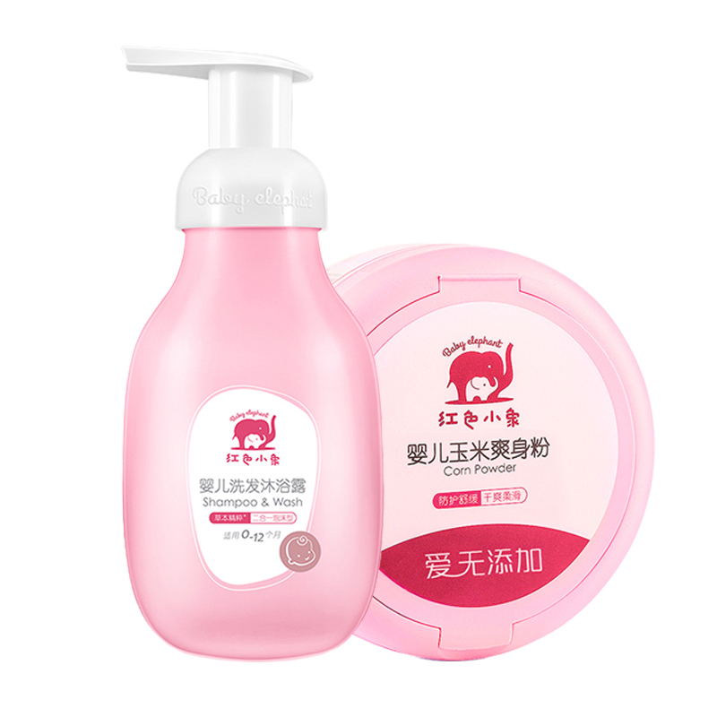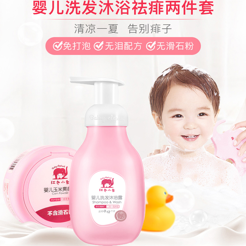 Red elephant baby shampoo and shower gel 255ml newborn baby natural corn talcum powder washing and care set