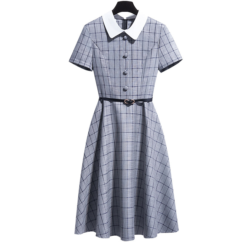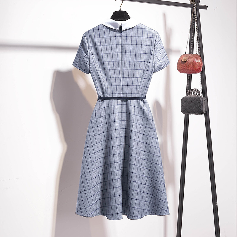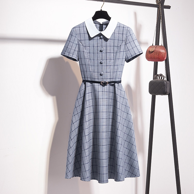 French dress waist waist thin temperament Foreign pie a-word skirt summer plaid polo collar design sense skirt light and familiar wind