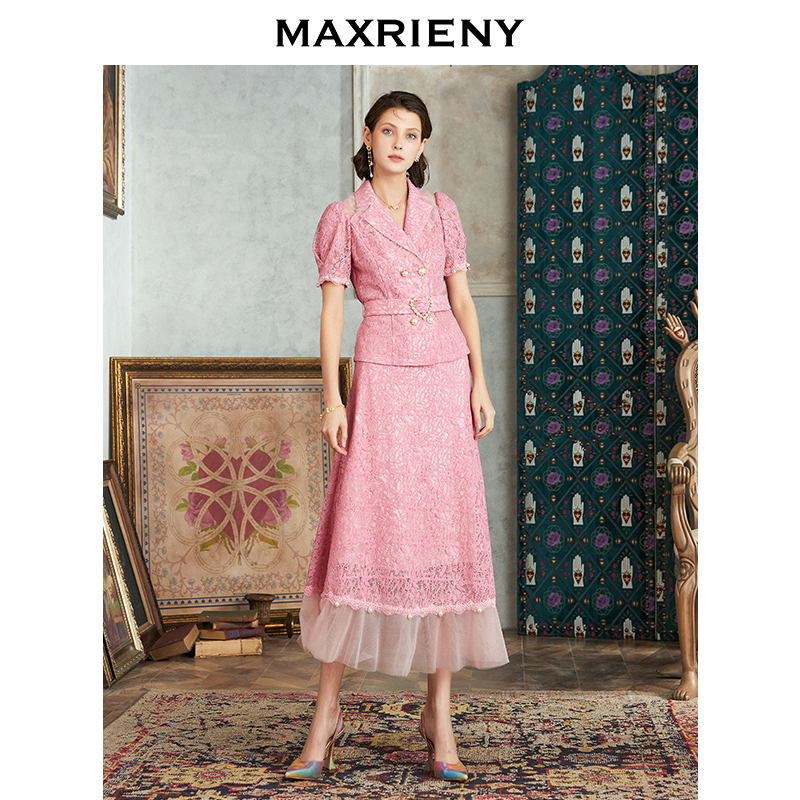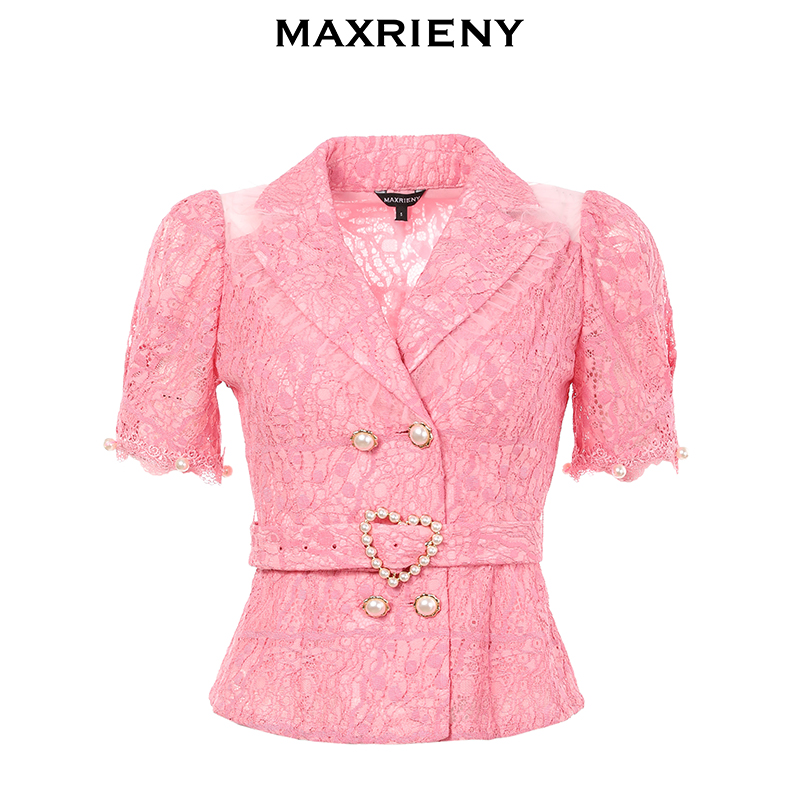 MAXRIENY2020 summer new temperament lace top short-sleeved waist western style shirt retro top female