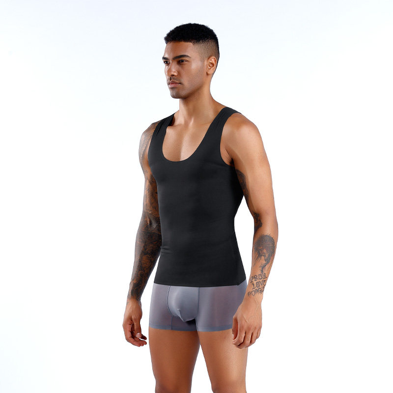 Belly vest men's summer corset breast shapewear ice silk thin corset wrap beer belly appear thin fitness vest