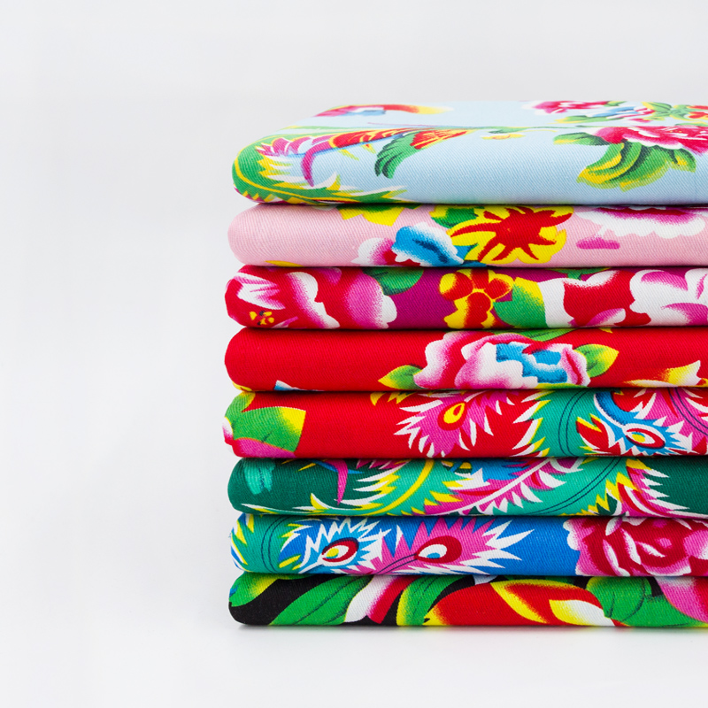 Northeast large flower cloth artificial cotton cloth cotton silk sleeping clothes children Two people turn out to serve fabric farmhouse Ledecorative cloth-Taobao