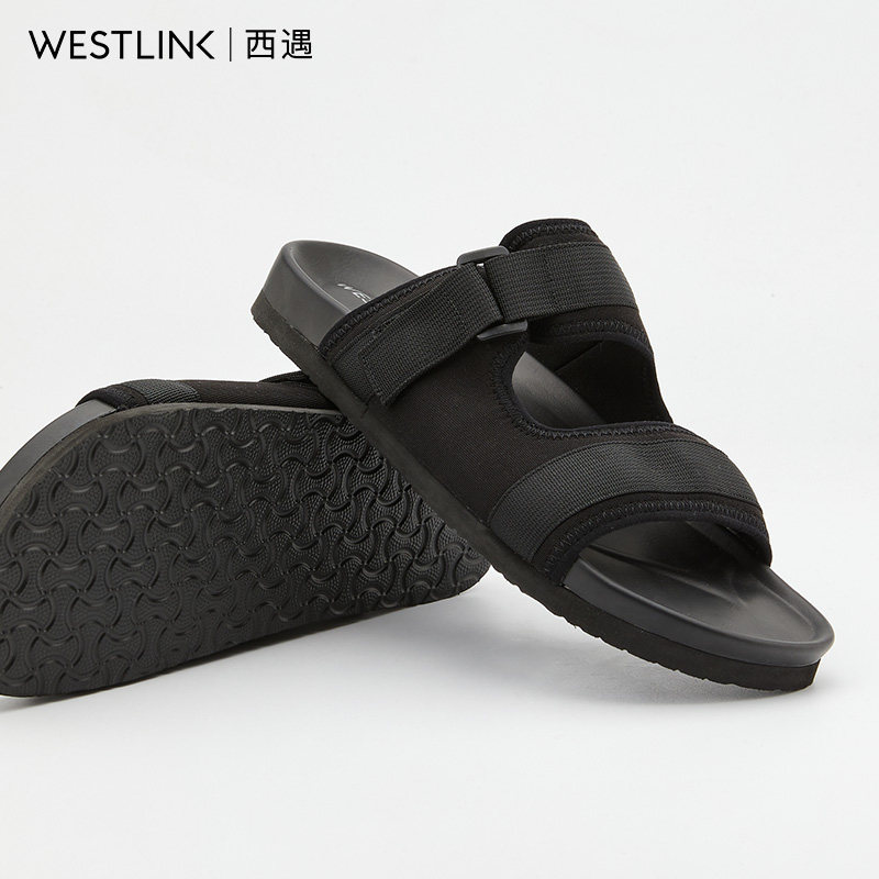 West meet sandal slippers men outside wearing ins tide 2022 summer new casual webbing toe bone groove seaside beach shoes men