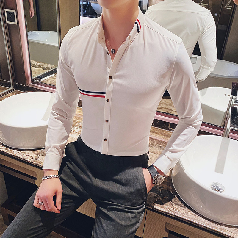 Spring and Autumn TB Fashion Splicing White Shirt Male Sleeve Couple Han Business Casual Shirt