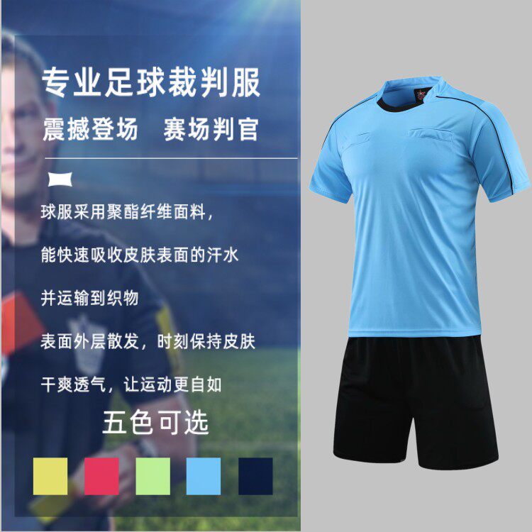 The new soccer referee suit set male collegiate sports professional competition suit short sleeve training jersey print letter