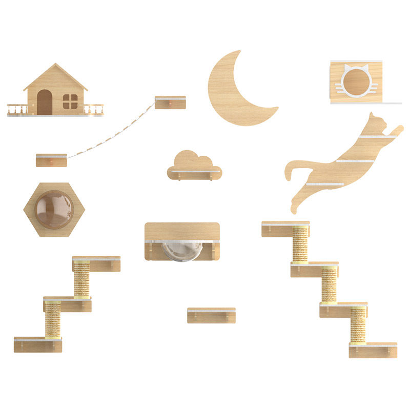Cat climbing frame wall type solid wood cat frame diy scratching board sisal scratching column wall hanging cat nest human cat shared jumping platform toy