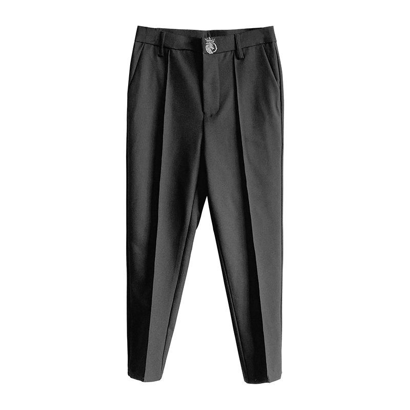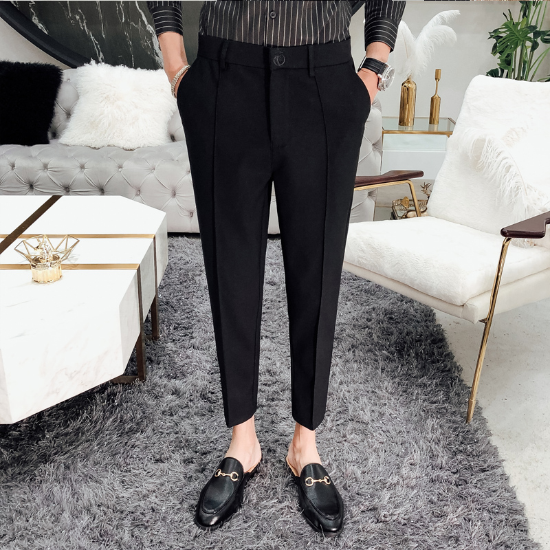 Summer 90% casual pants men's body with small feet ruffling and handsome western dress pants Korean version Trend embroidered pants hairstylist 9 points