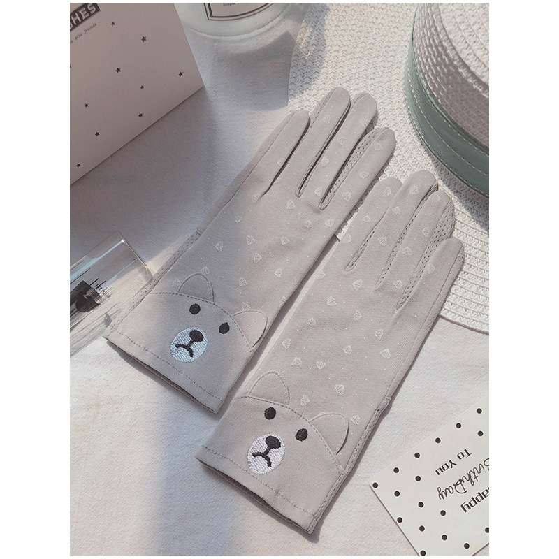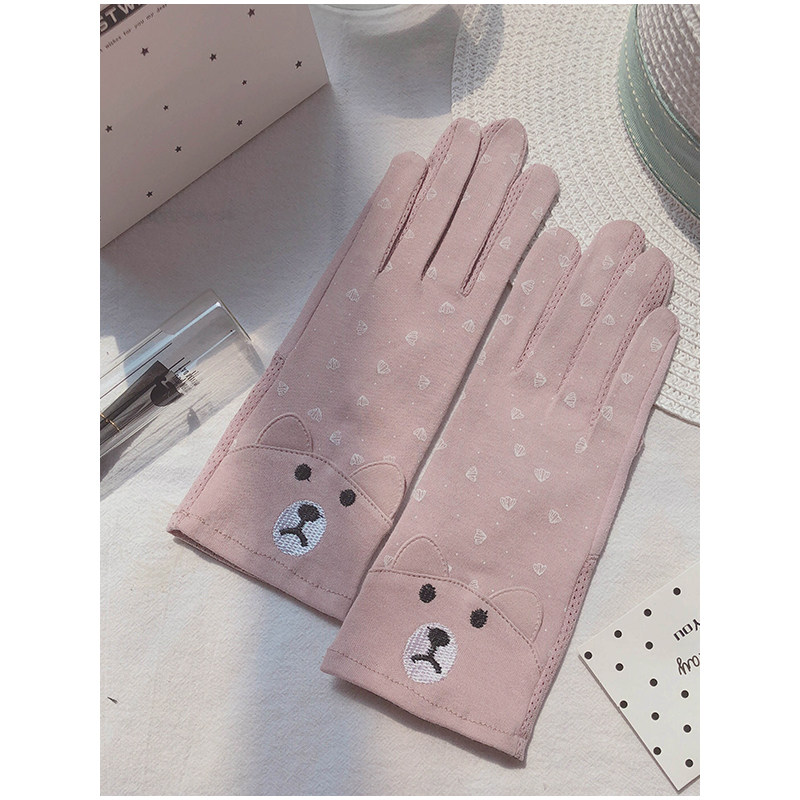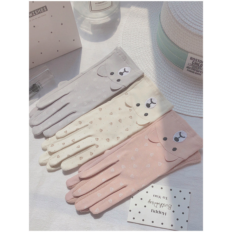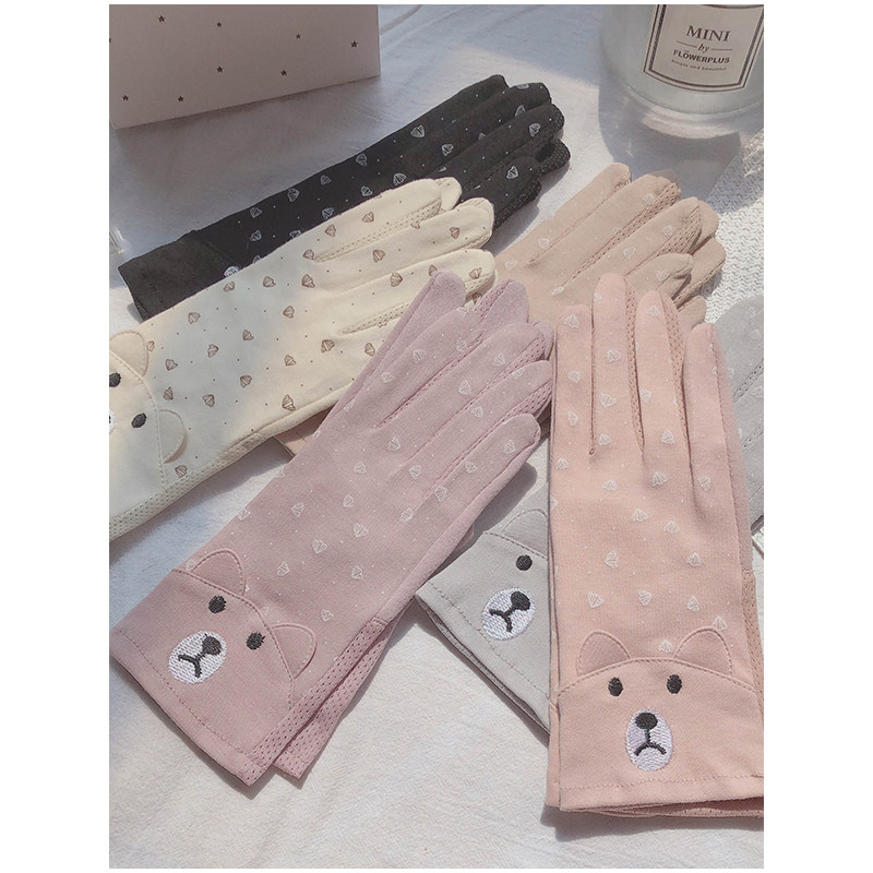 Sun Protection Gloves Women's Slim Summer Touch Screen Spring Autumn Season Cute Riding Slip Elastic Cotton Stickers For Riding Electric Bikes