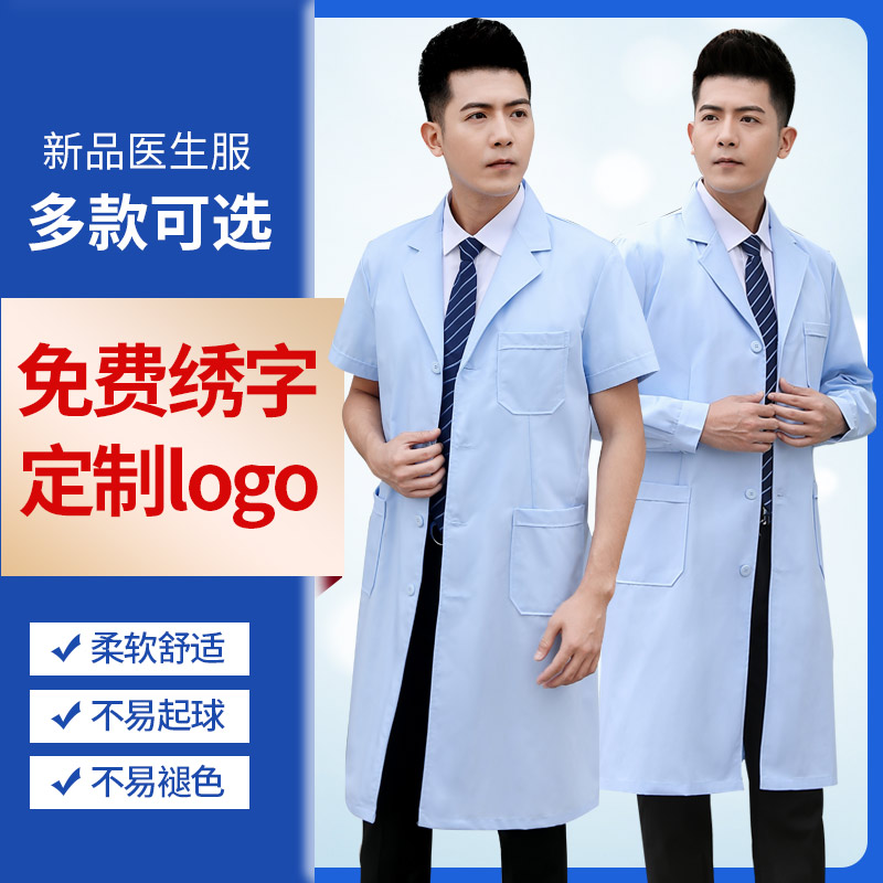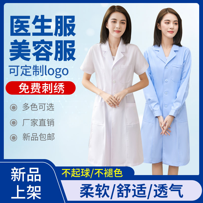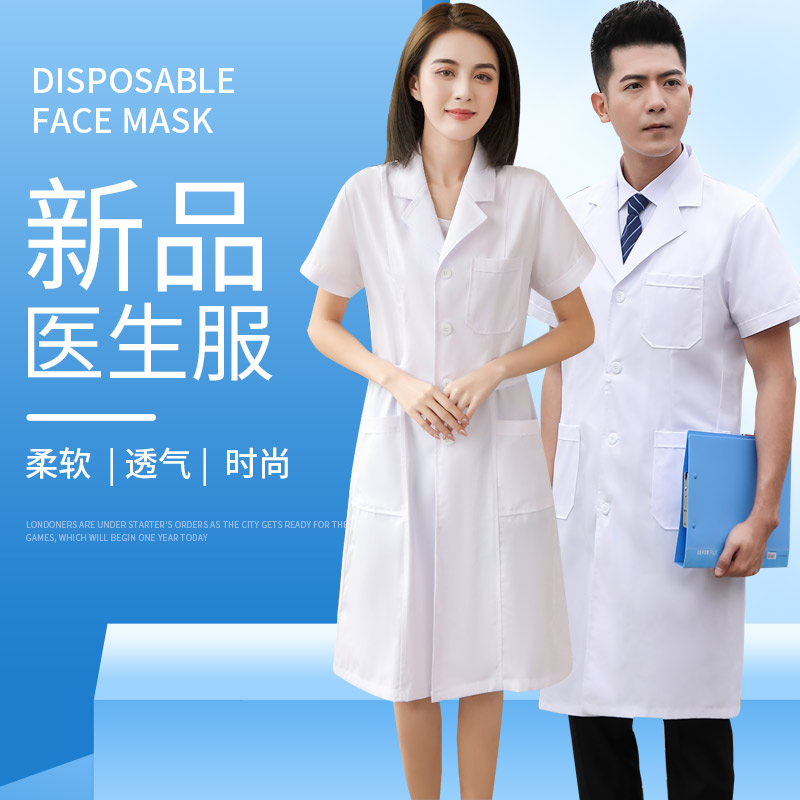 White coat long-sleeved doctor clothing women's and men's clothing short-sleeved thin section beauty nurse clothing pharmacy lab coat chemical overalls