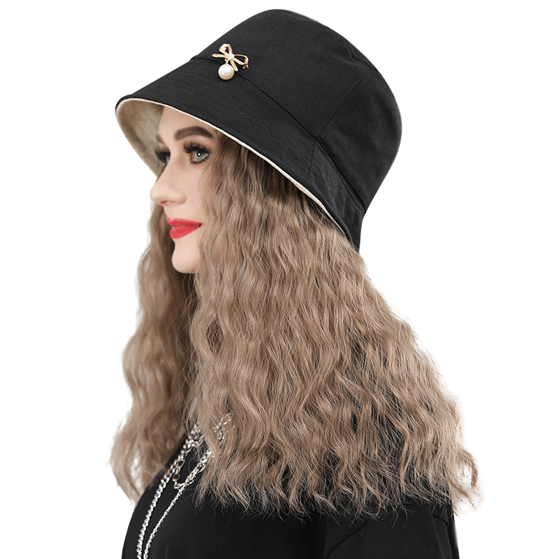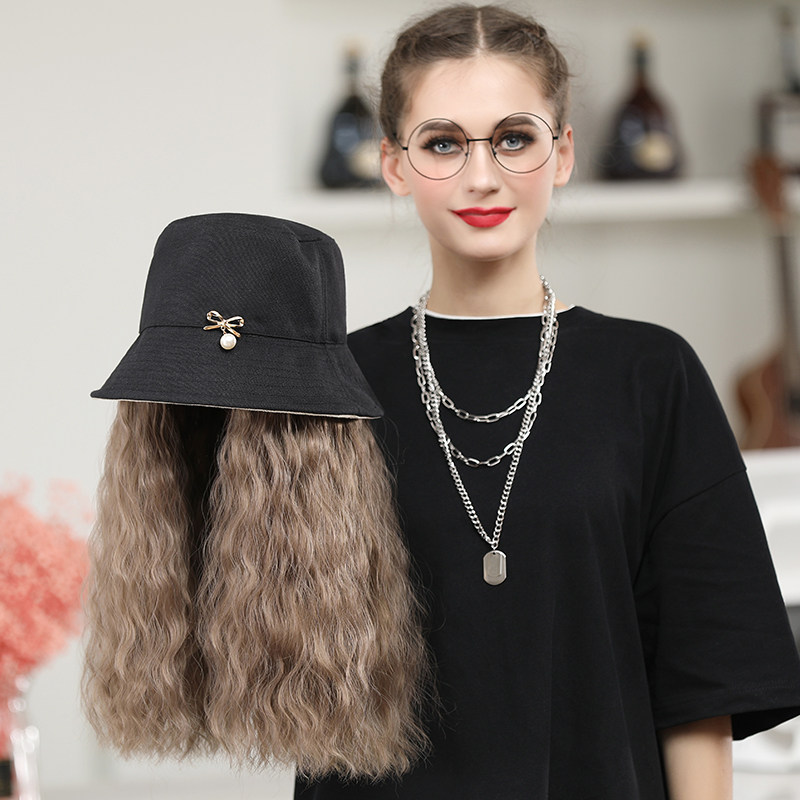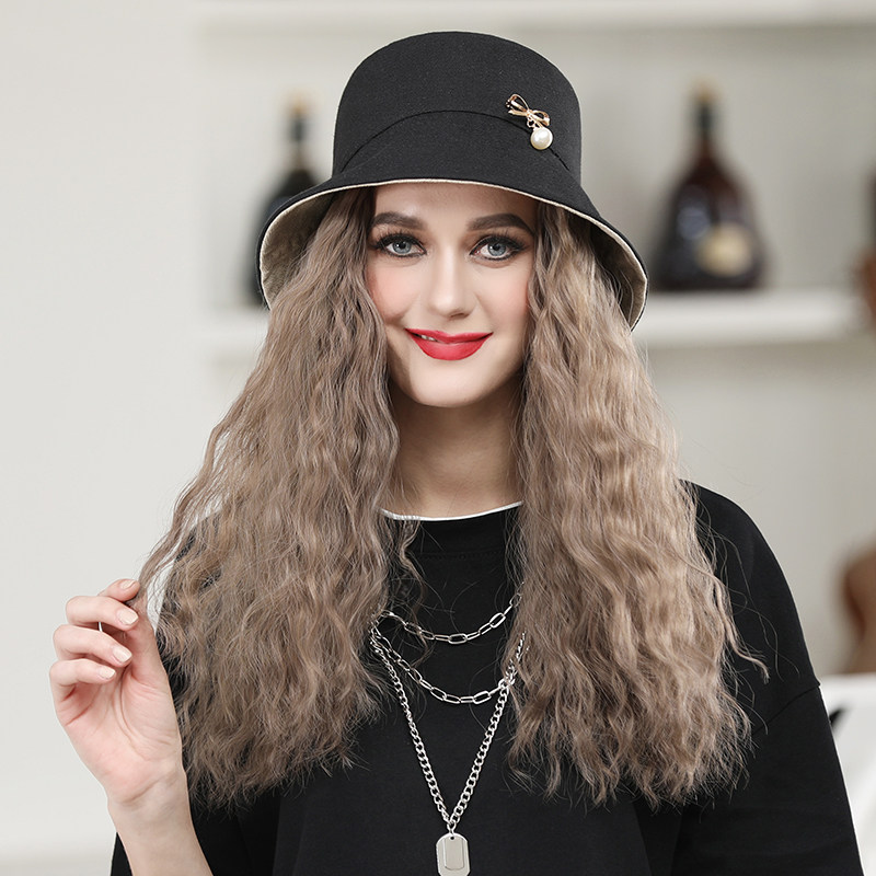 Wig hat one fashion women autumn and winter long hair fisherman hat with wig full headgear simulation long curly hair