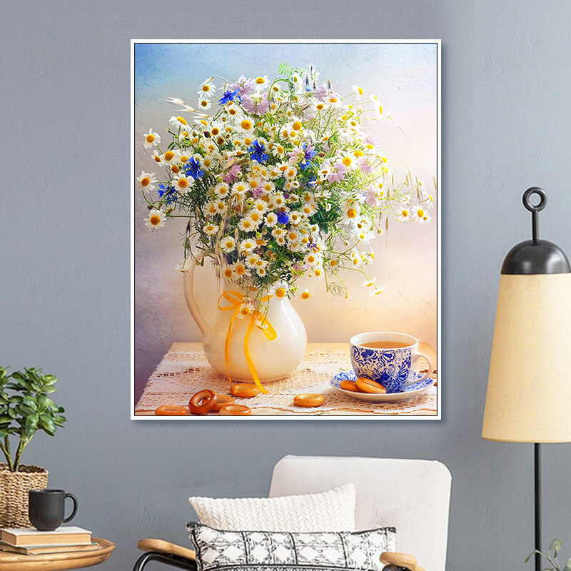Small cross embroidered vase new 2022 Flower series dining room Bedroom Xuanguan Corridor Living room Own Line Embroidery 2021