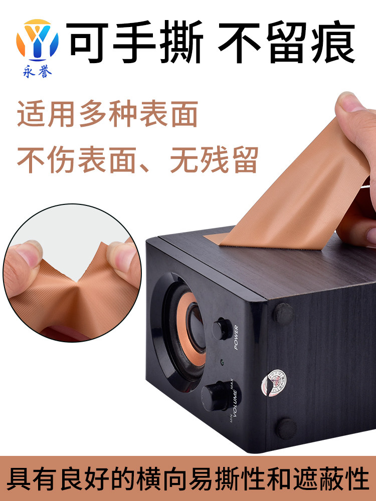PVC knife-free tape Easy to tear strong cloth tape strapping seal Wooden audio speaker protection tape masking Non-trace wear-resistant packaging sealant without glue Hand-torn cloth tape 22 meters