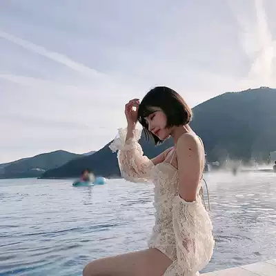Swimsuit Fairy Fan ins Sexy small breasts gather thin belly cover one-piece Student long sleeve holiday hot spring swimsuit