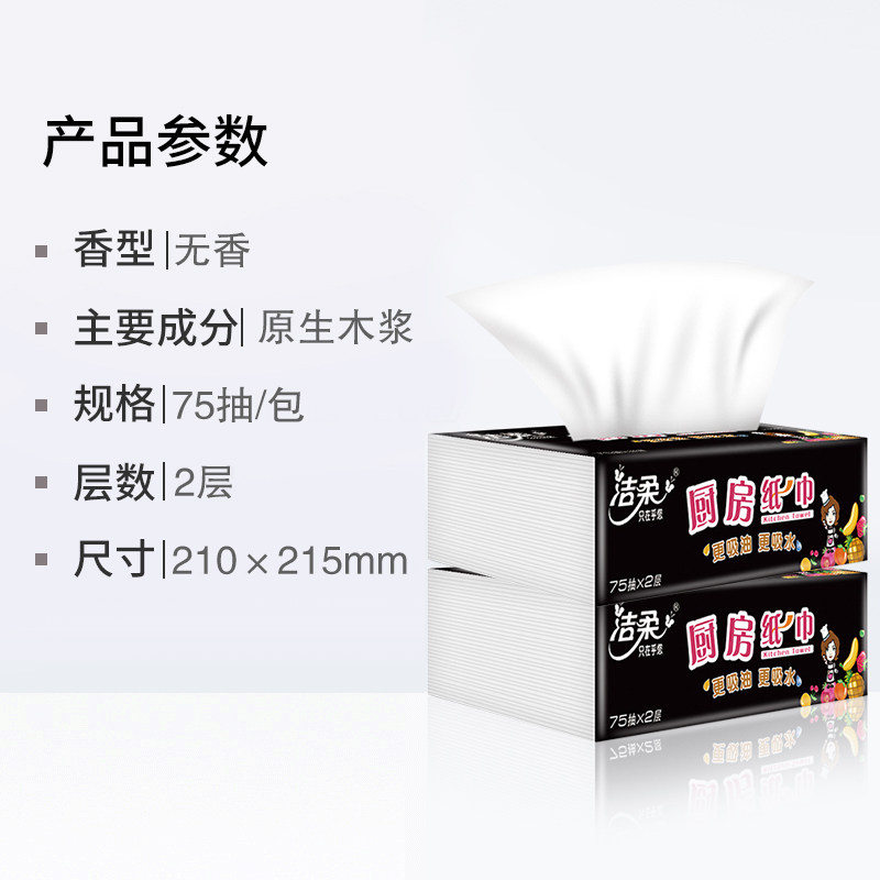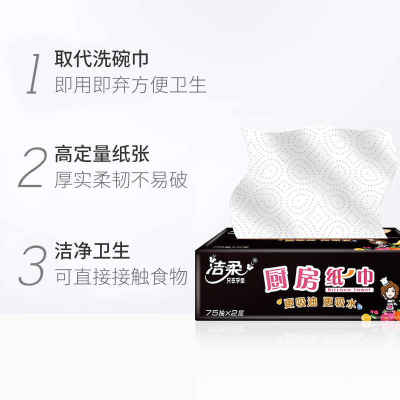 Jie Rou kitchen with paper 2 layers 75 pump 16 packs a total of 2 boxes of water absorption oil suction extraction type wiping pan rubbing oil paper kitchen paper