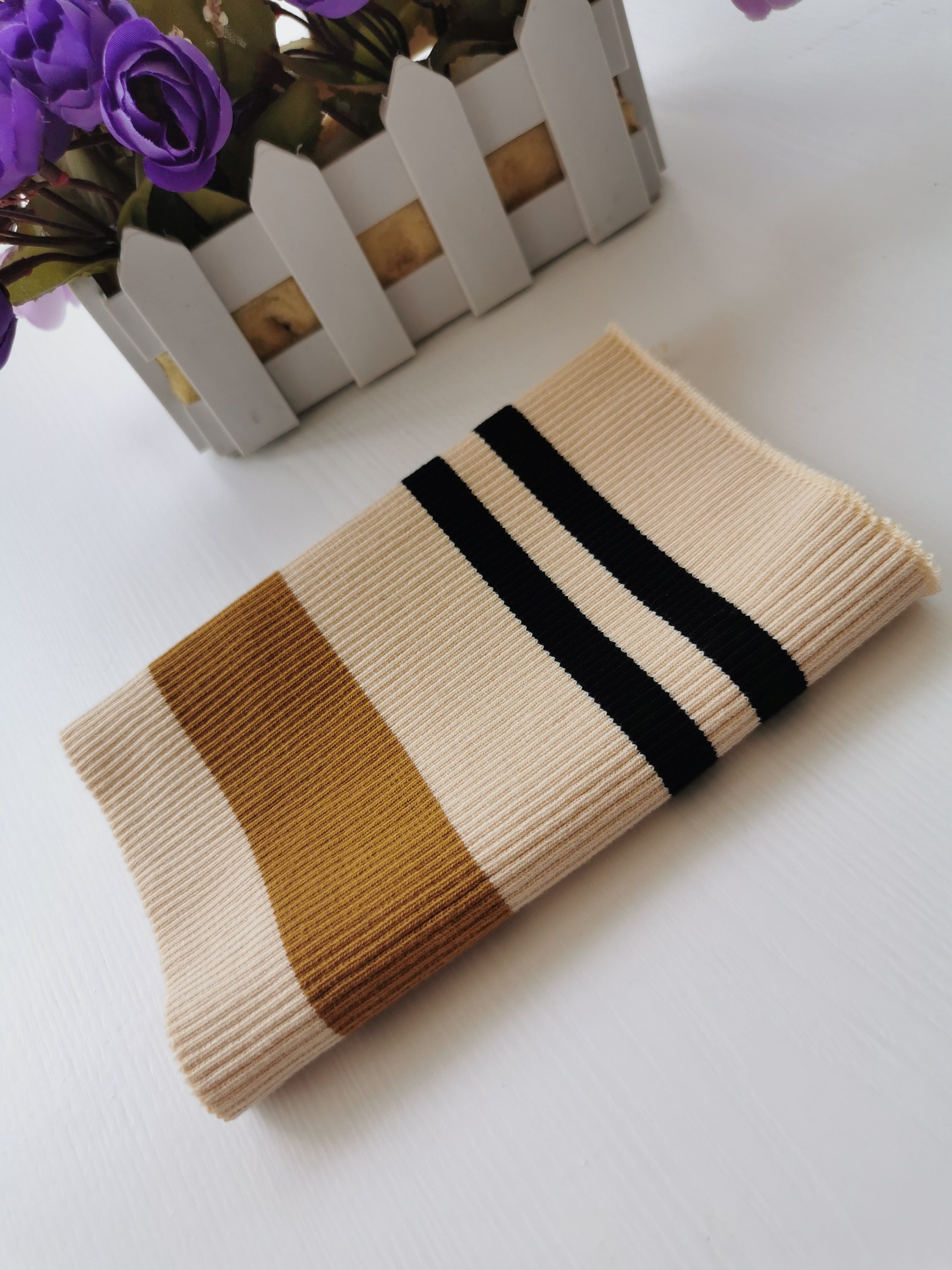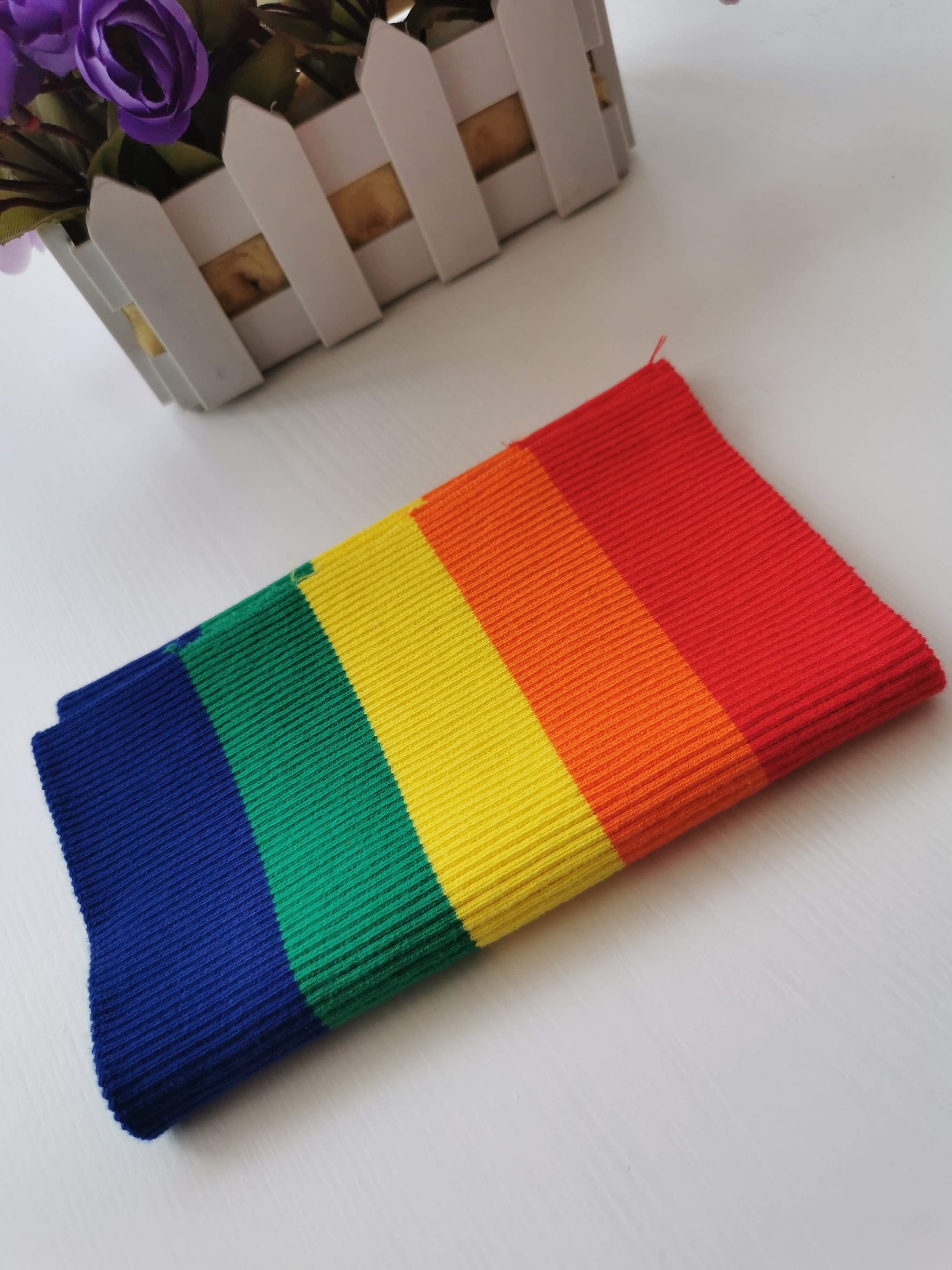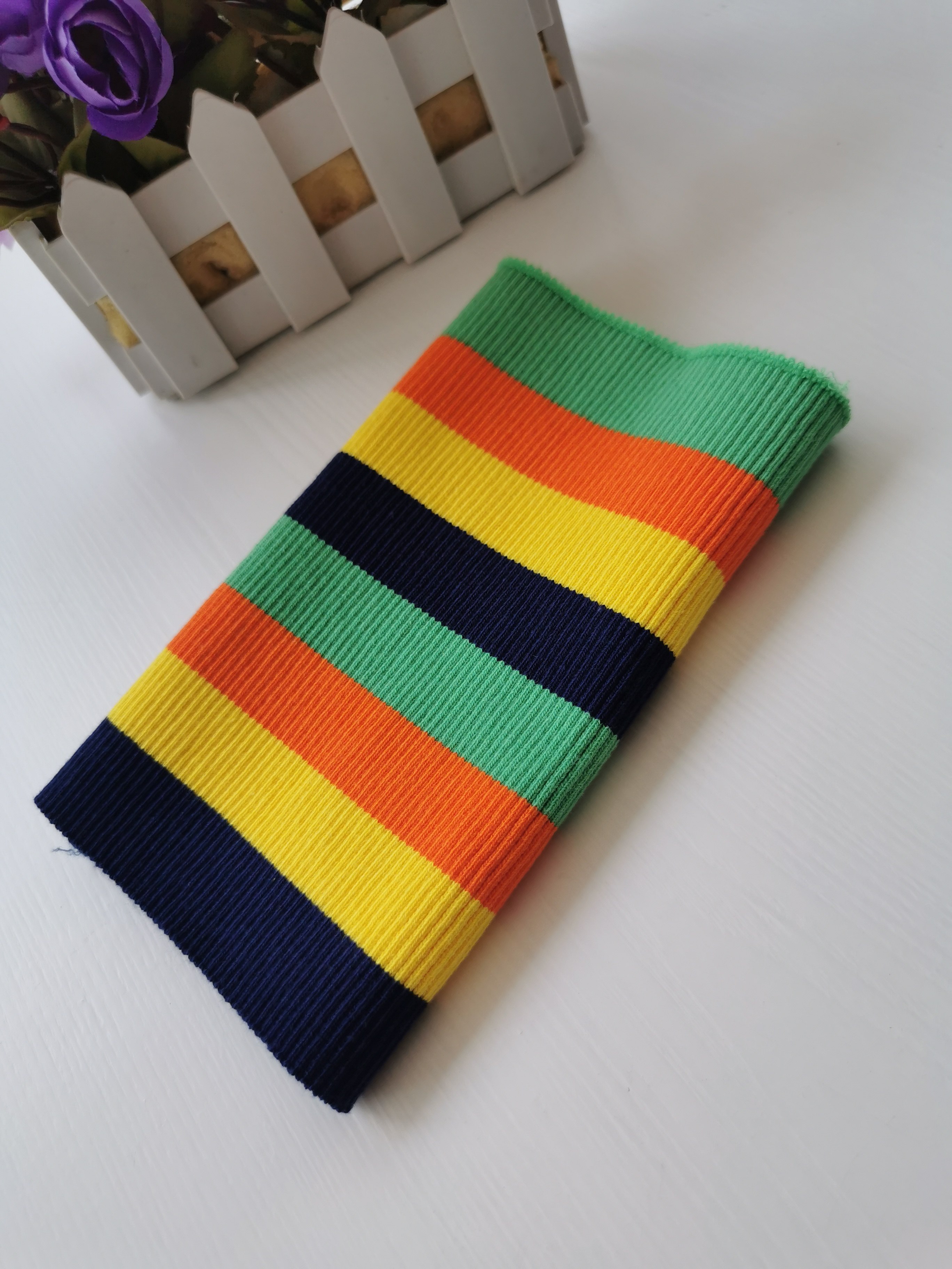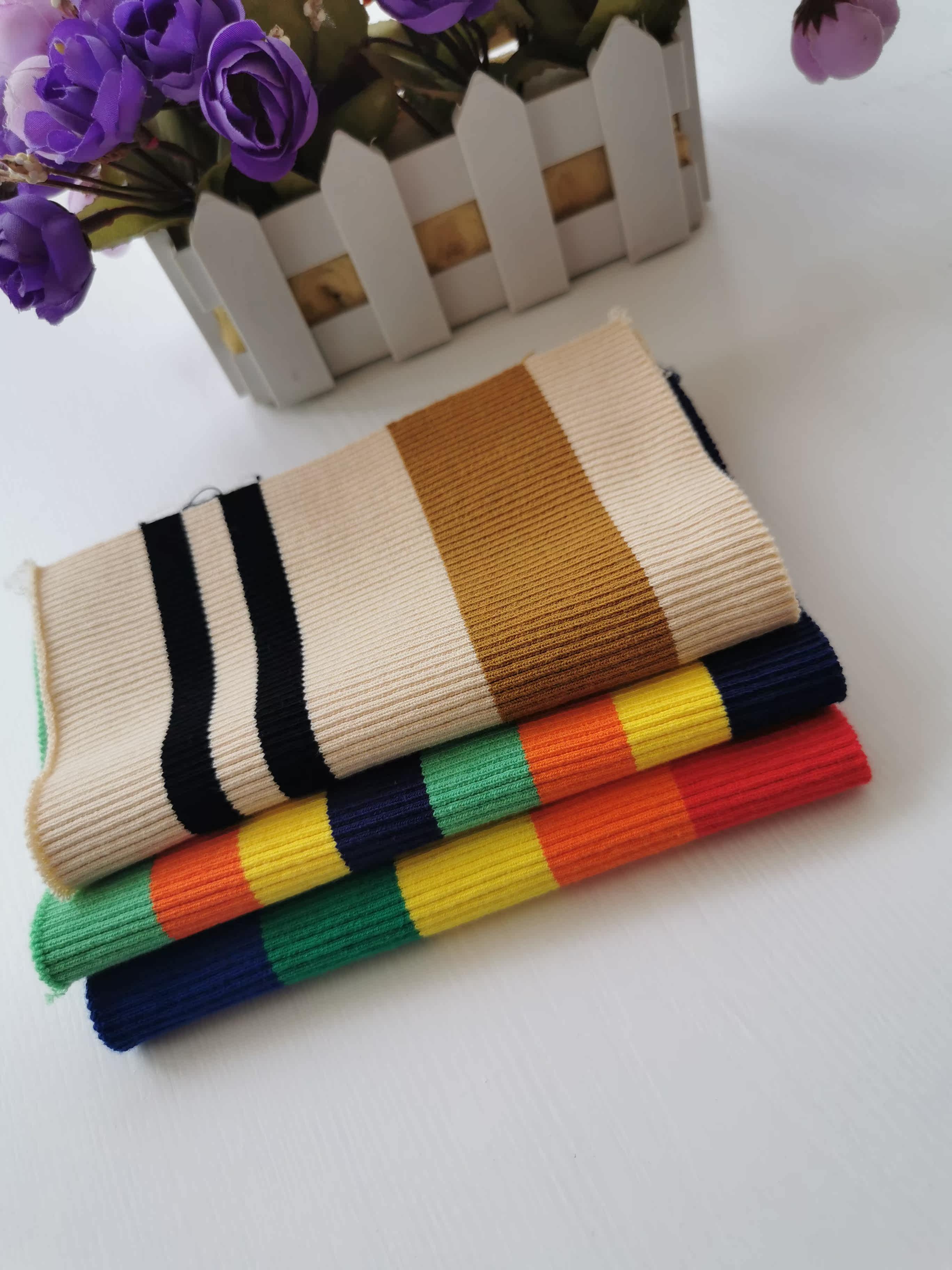 Spring and autumn knitted rainbow fine thread lace ribbed thin thick cotton T round neckline sleeves hem waistband double flat knitted collar