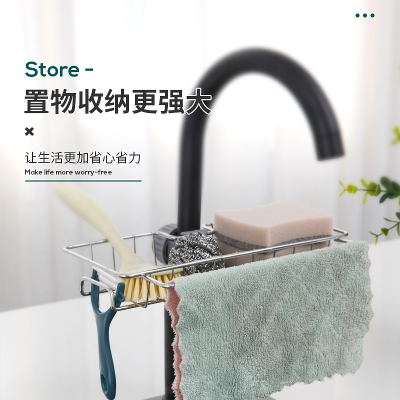 Faucet shelf Stainless steel kitchen sink storage dish drain artifact rack Sink sink rag basket