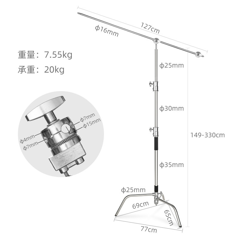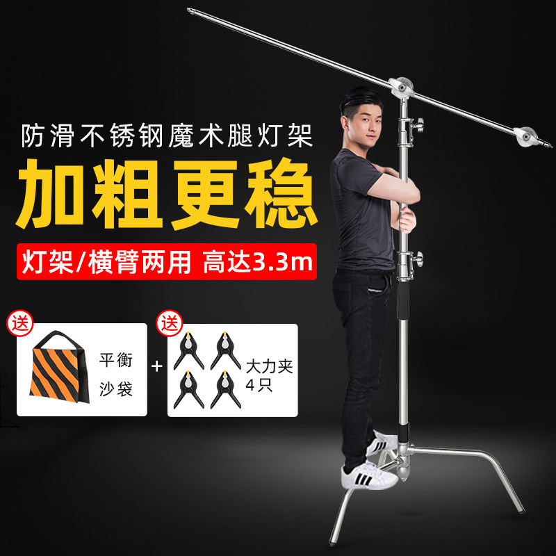 Magic leg light stand thick studio bracket C type flash dual use top light stainless steel crossbar inclined arm top light stand flag board background frame reflector film and television ground light stand adjustable support tripod