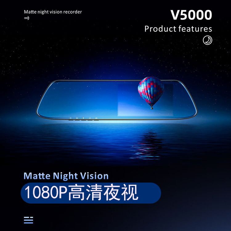 The first on-site vehicle front and rear dual recording high-definition night vision driving recorder reversing image rear mirror V5000