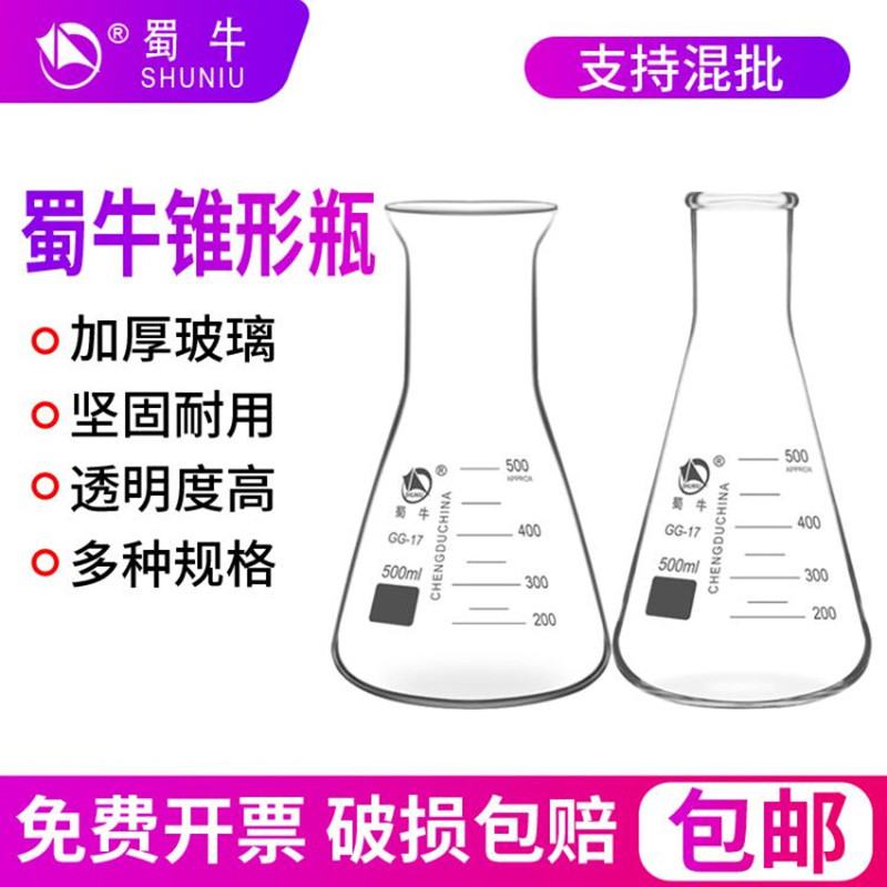 Shu Bull Conical Bottle Triangle Flask Drinking Water Glass Stopper 100150250500 100150250500 1000 2000 3000 5000ml Guangstraight Size Mouth Chemical Experiment