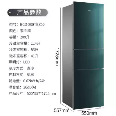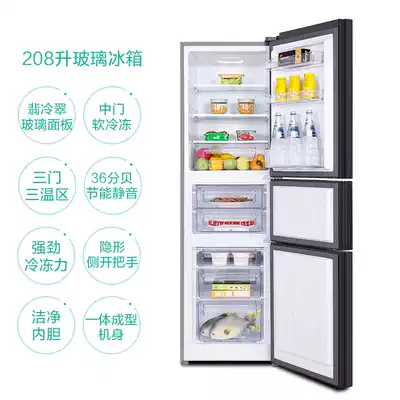 Glass panel TCL household three-door refrigerator three-door 208 liters energy-saving silent Emerald BCD-208TBZ50