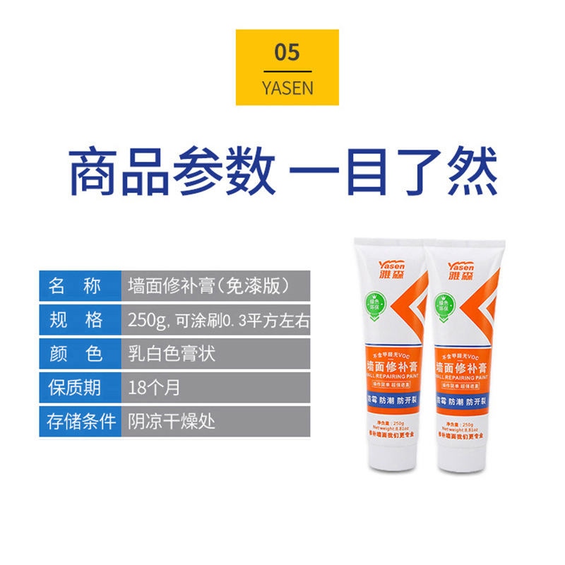 1 pack of 250g (wall repair paste comes with tools) 2 packs of 500g (wall repair paste comes with tools) 3 packs of 750g (wall repair paste comes with tools) 1 bottle of barrel 1k