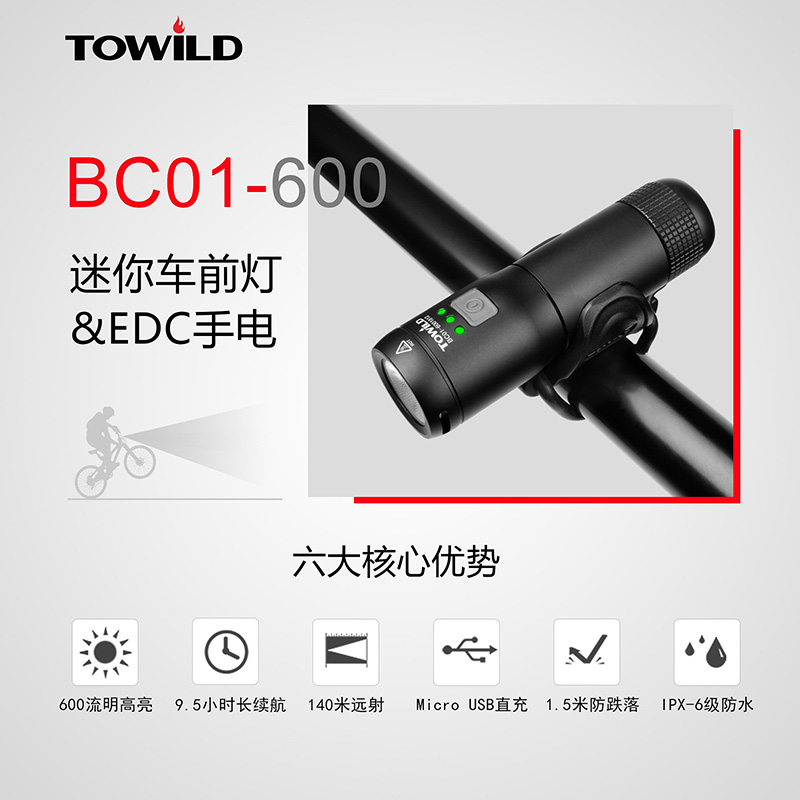 TOWILD Takano mountain bike mini bike riding light strong light LED charging night riding road bike headlight