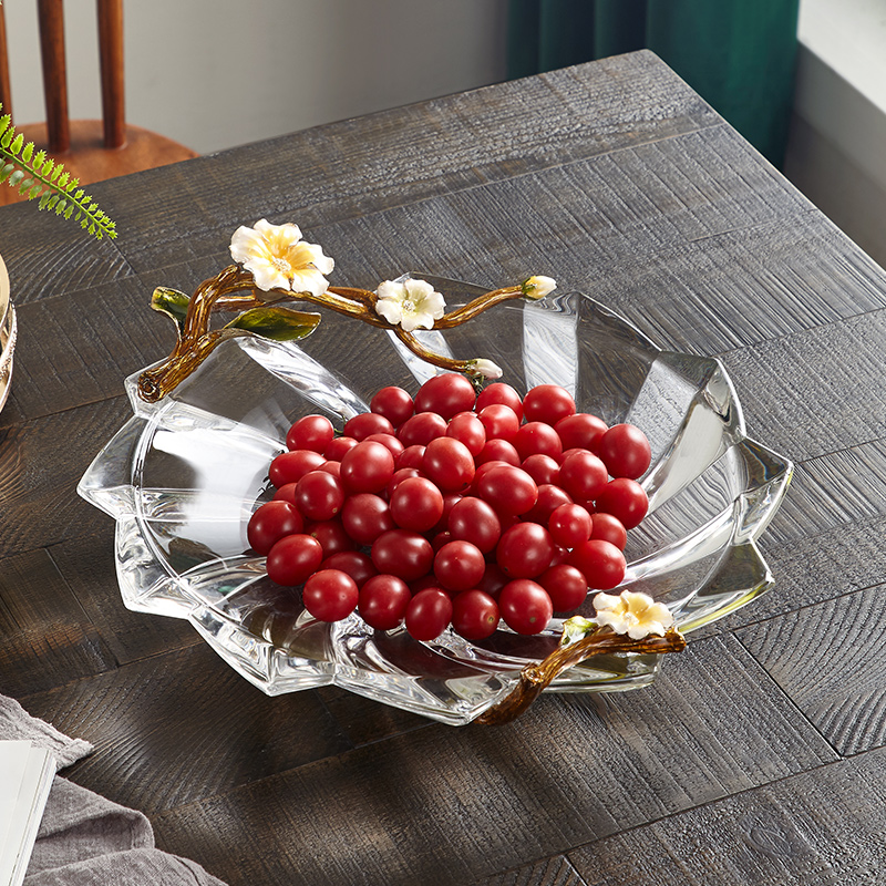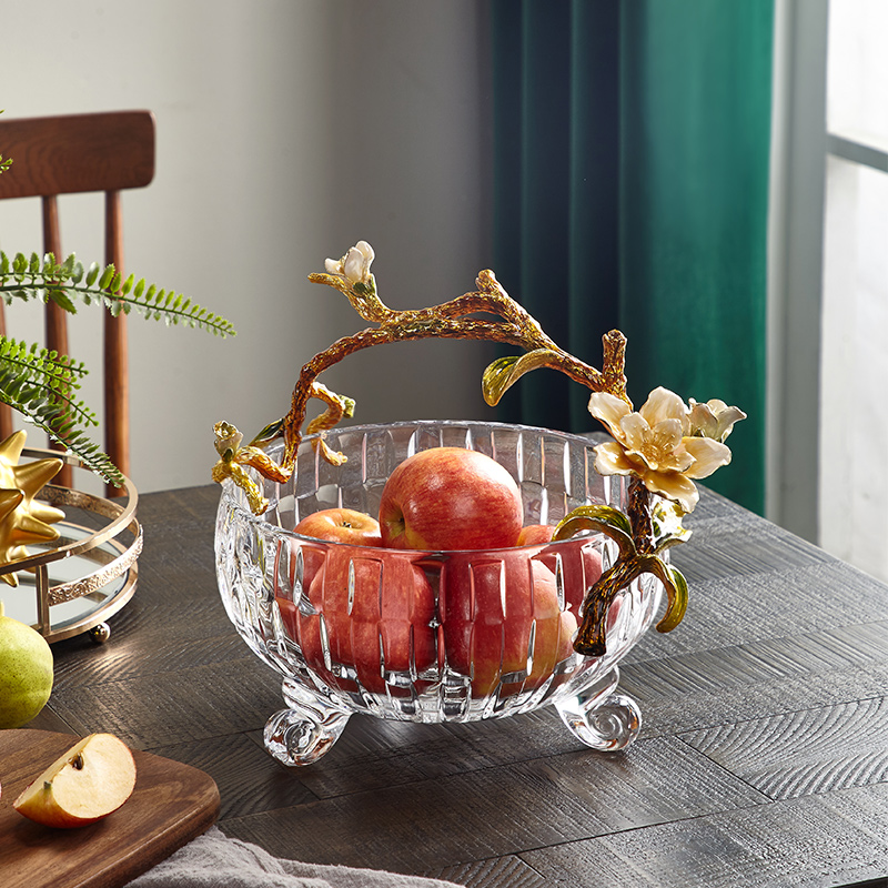 Light luxury crystal fruit plate living room desktop enamel color fruit plate decoration European-style dining room decoration creative glass decoration