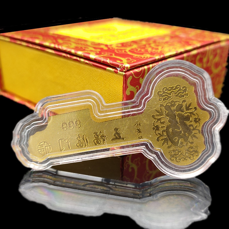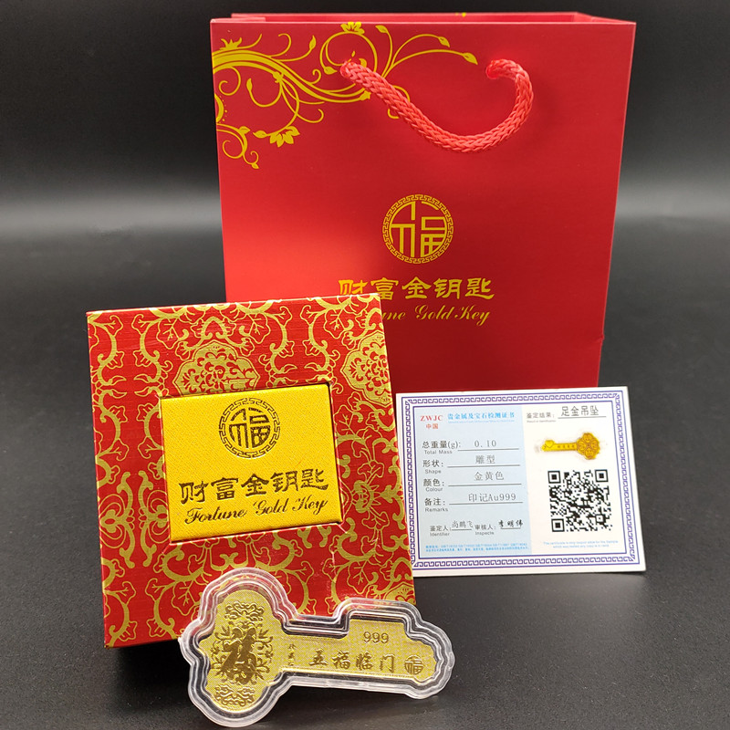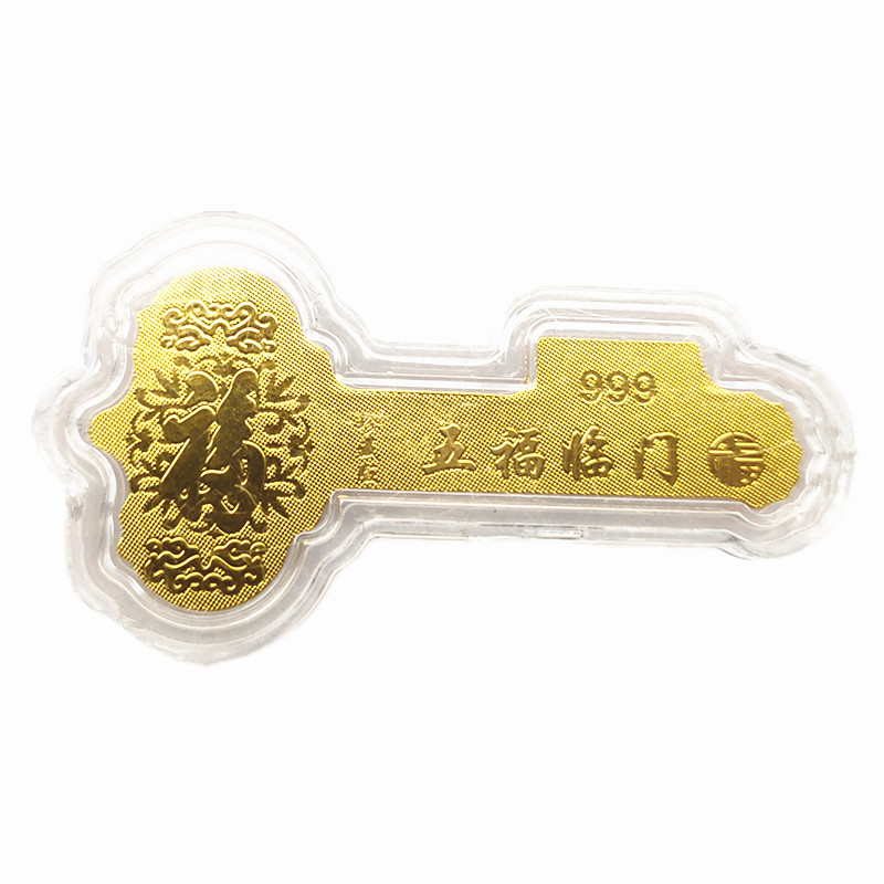 Gold Foil Wealth Gold Key Wufu Linmen Small Gold Bar Insurance Company Gift Customized Bank Opening Good Handy Gift