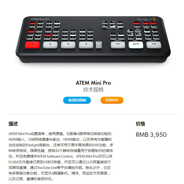 BMD ATEM Mini Pro switch station HD video USB encoded push stream live acquisition card radio station