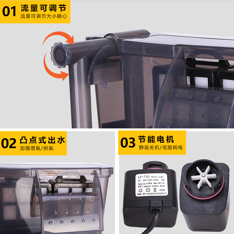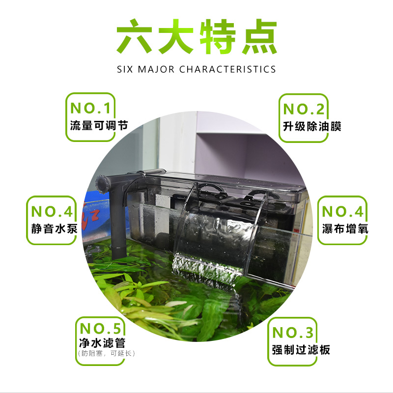Wall-mounted filter small wall-mounted water purification and oxygenation three-in-one external waterfall small turtle fish tank circulation pump mute