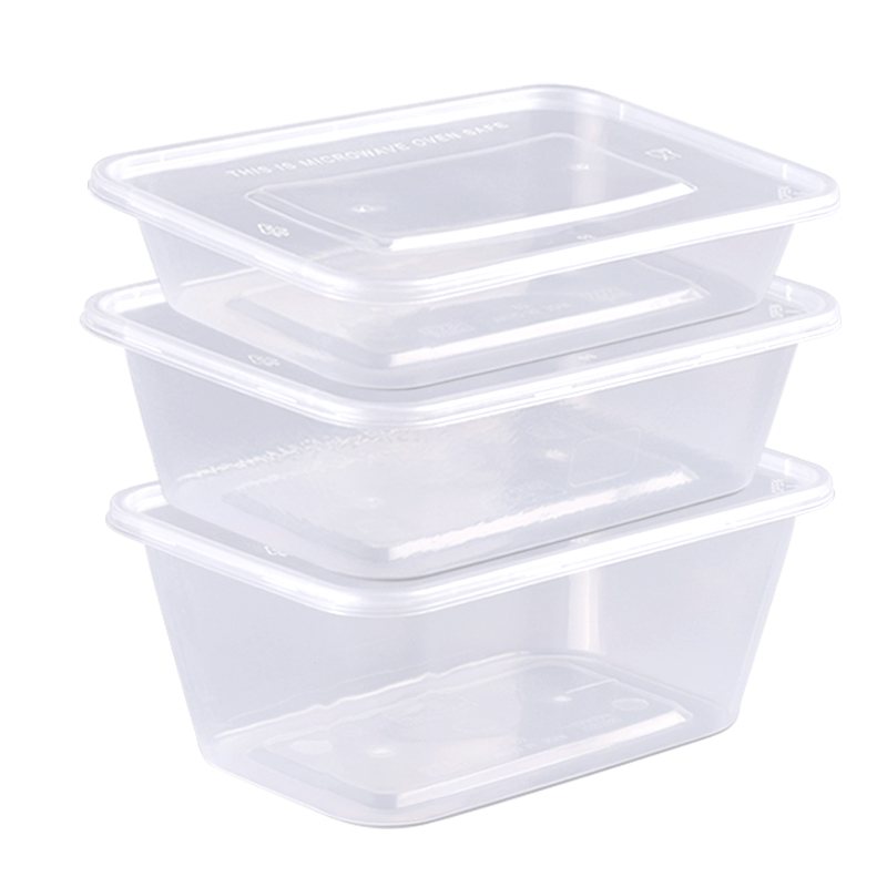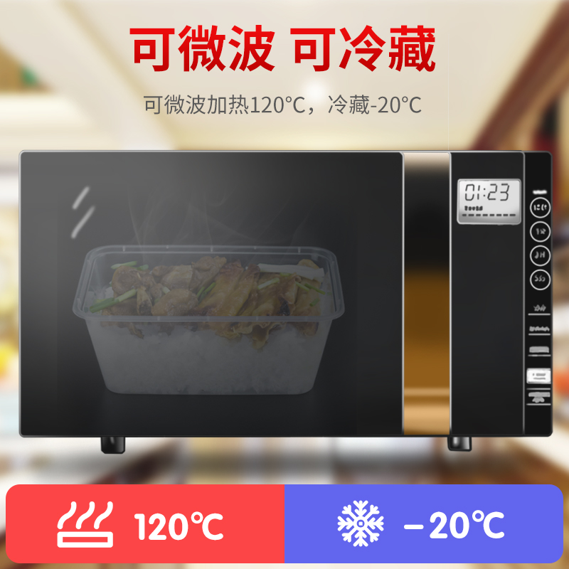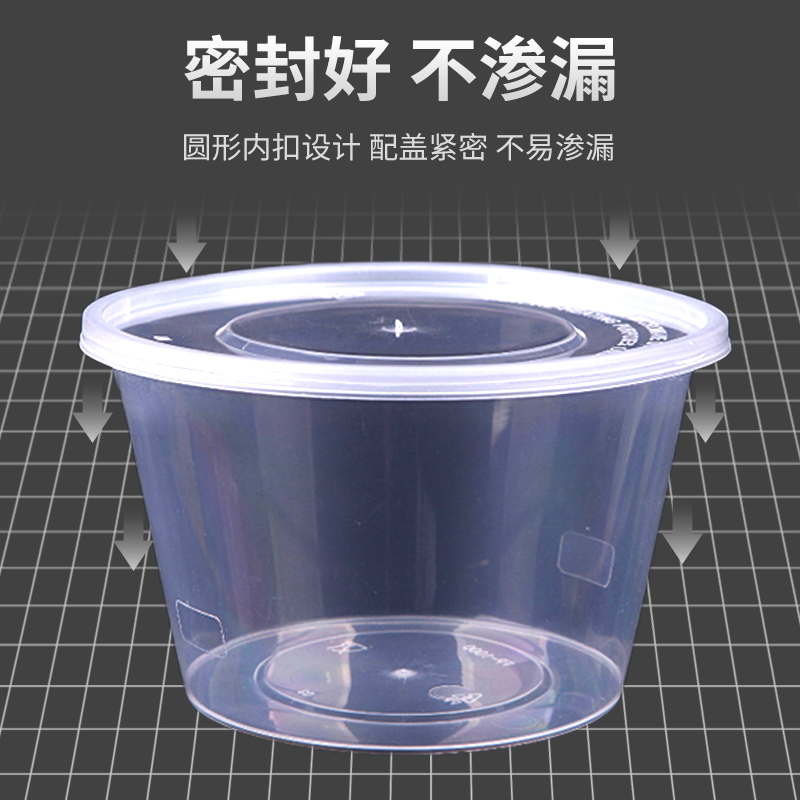 High-end disposable dining box thickened plastic round rectangular 1000ml with lid packing box catering outside dining box