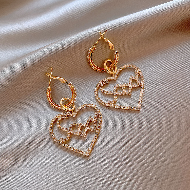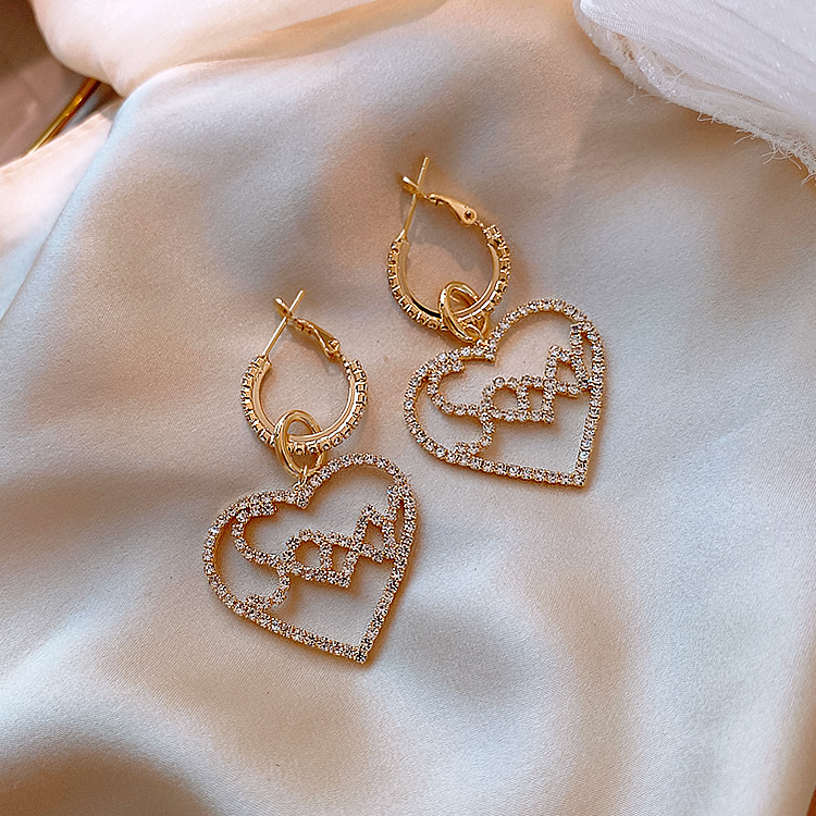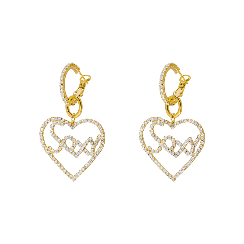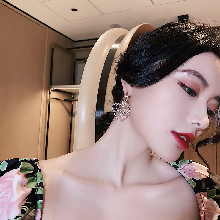2020 New s925 Silver Pin Letter Peach Heart Earrings Woman Individuality Japan-ROK Tide Temperament Exaggerated Earring Earrings Ornament