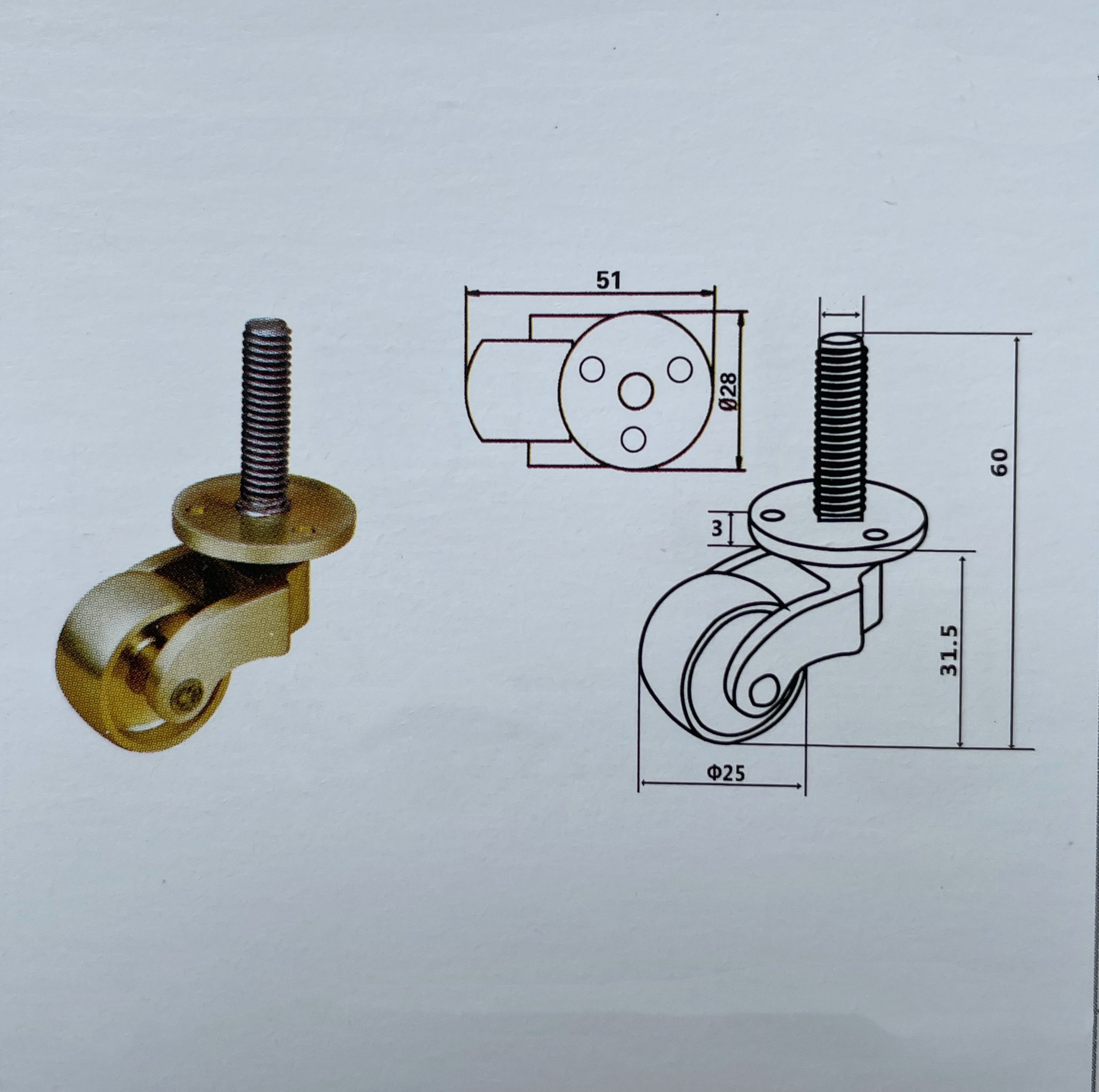 Manufacturer Direct copper castors Sino-European style Home Dining Car Cart Studs Trundle Rubber Castors Universal Wheels