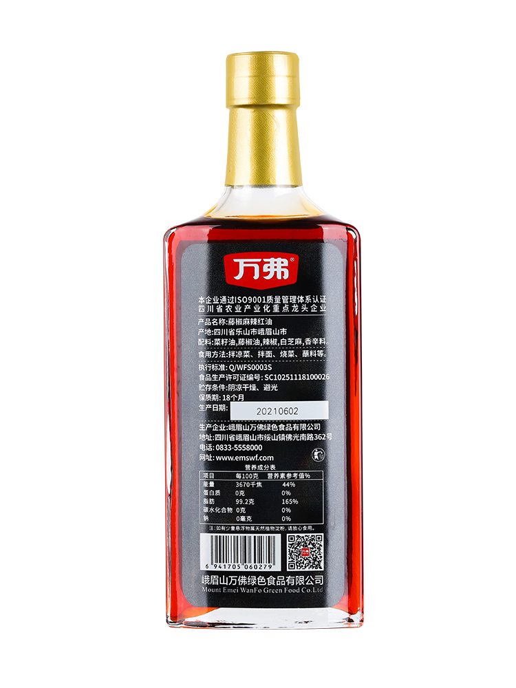 Wanfu rattan pepper spicy red oil 400ml Sichuan chili oil household oil splash spicy bottled cold skin cold seasoning