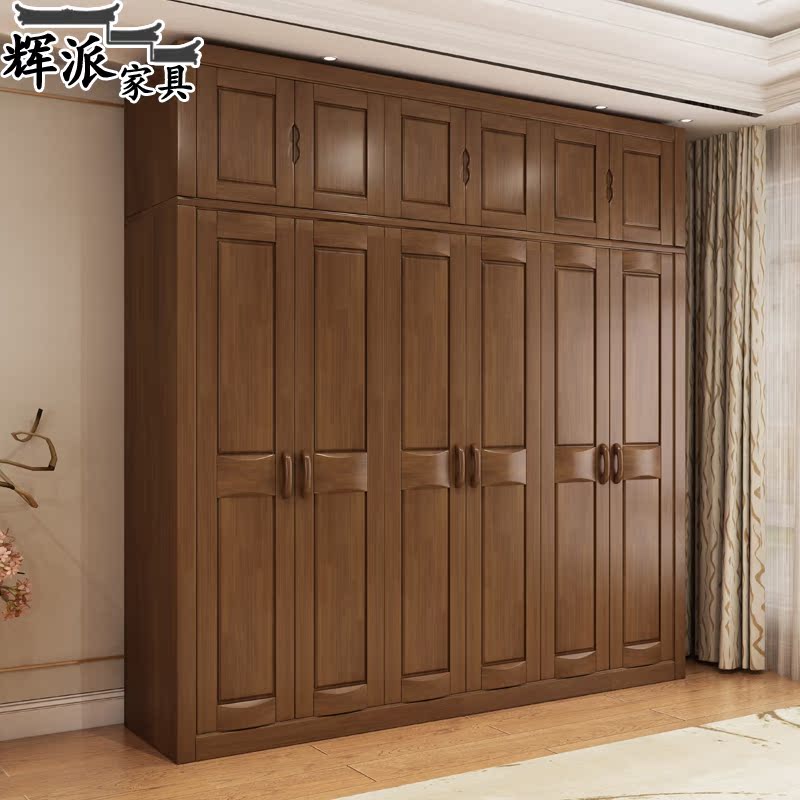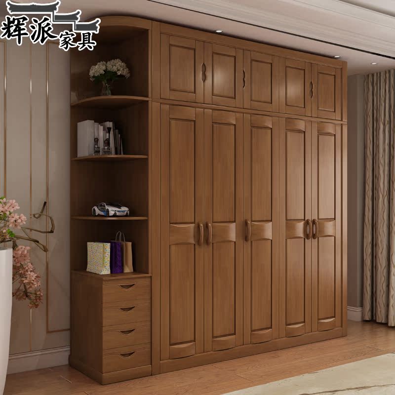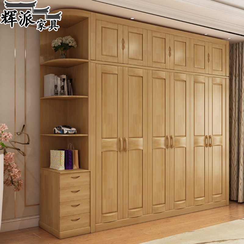 Chinese style solid wood wardrobe 3456 swing door economical side door with corner log wardrobe bedroom oak furniture