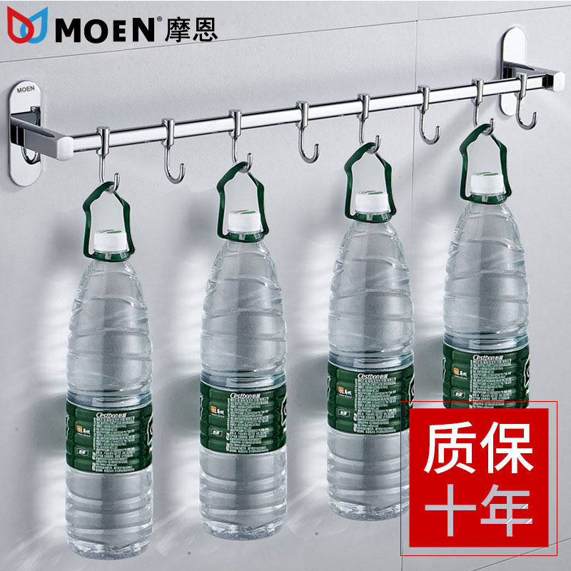 Single lever Hook Kitchen Door Rear Stainless Steel Row Hook Wall-mounted Bathroom Mobile Towel Hanging Pole With Activity Hook
