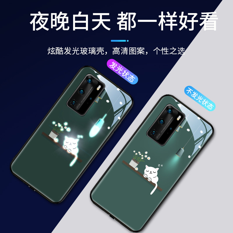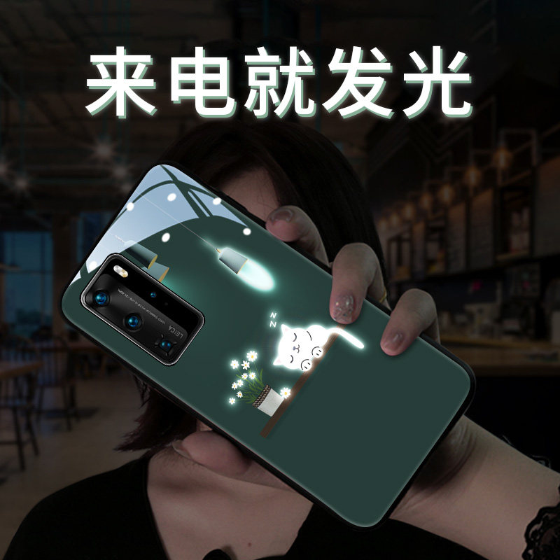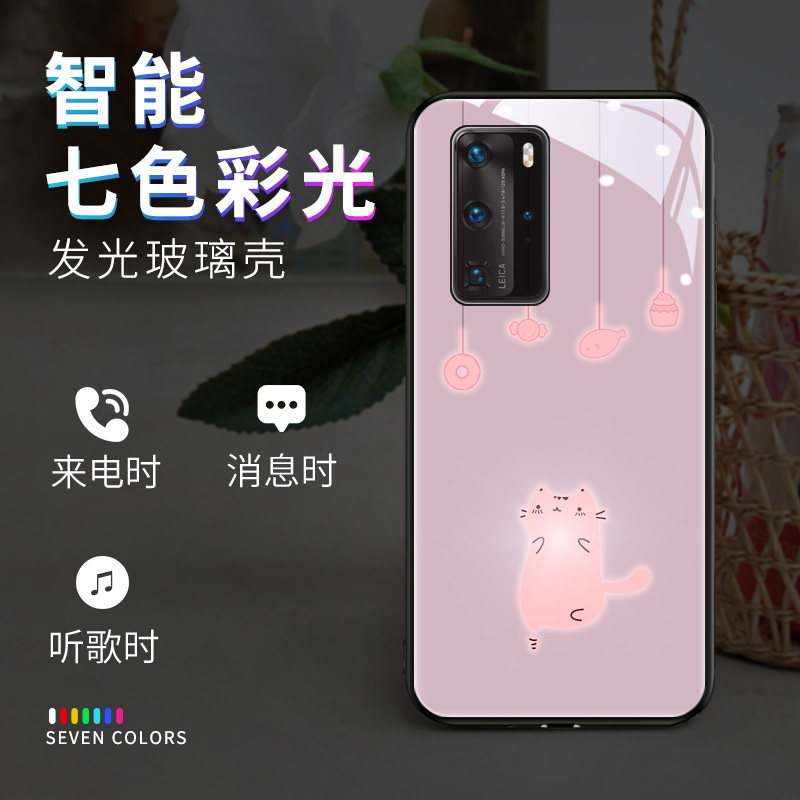 The light cat is suitable for Huawei P40 mobile phone protection shell luminous 5G version P40pro new wave card idea P30pro call flash glass P30 protective sleeve P20 net red lady po