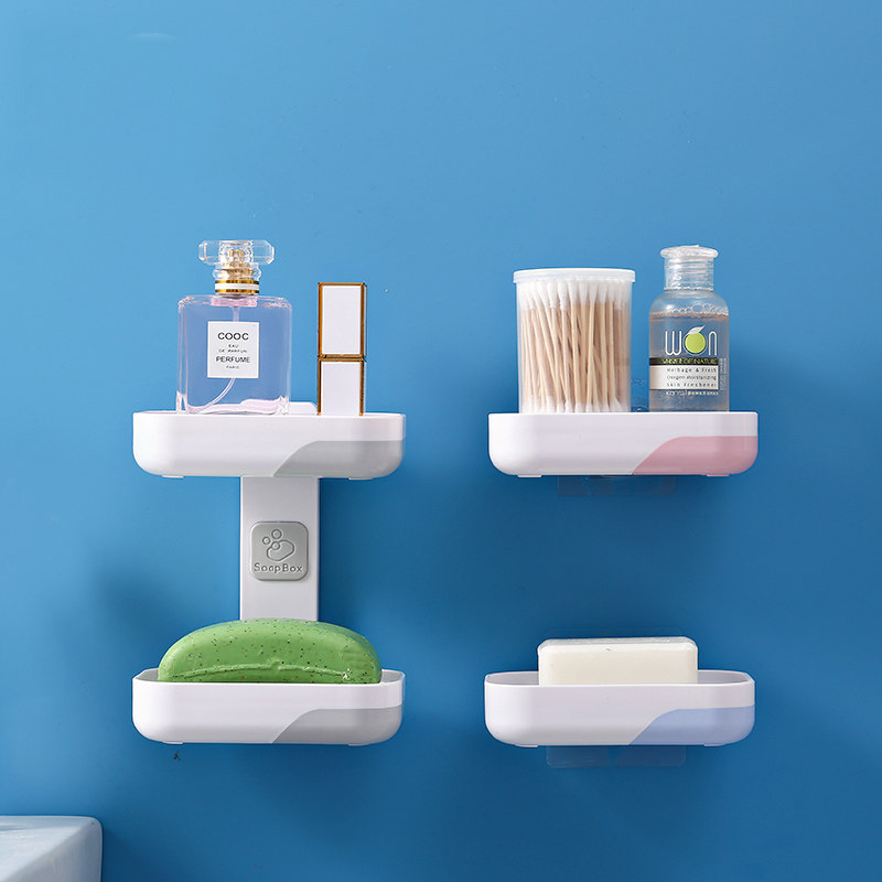 Ai fat box creative suction cup-type powder room drain double shelf hole-free cute wall-mounted incense box