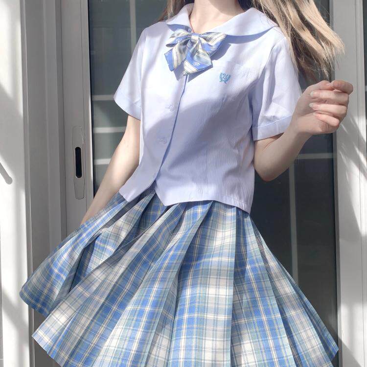 Kasuga (drinking spring water) spot original blue dress jk uniform dress Orthodox pleated girl fresh College