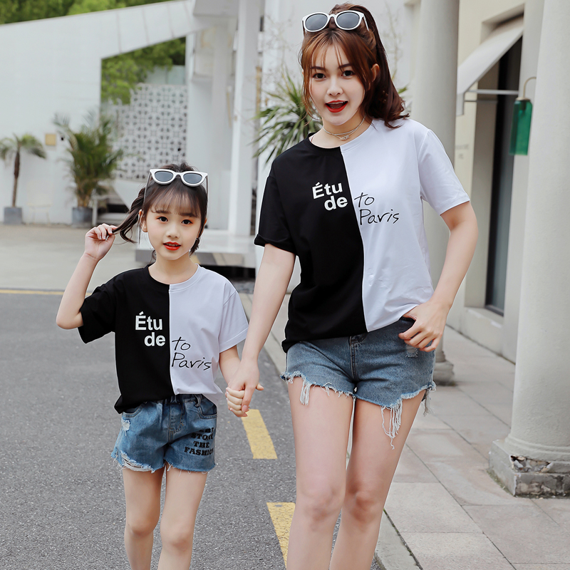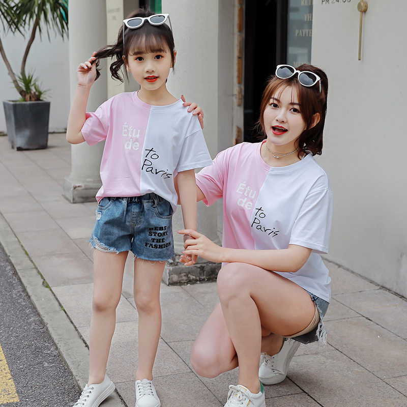 Different pro-sub-dress 2022 Summer clothing new girl hit color splicing T-shirt female dress Korean version of the Korean version T-shirt wave