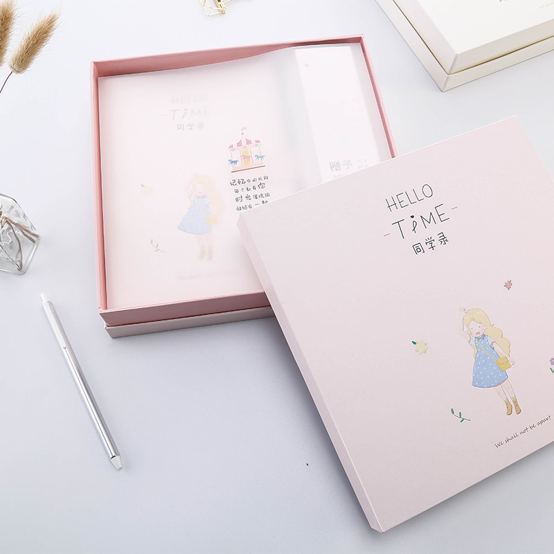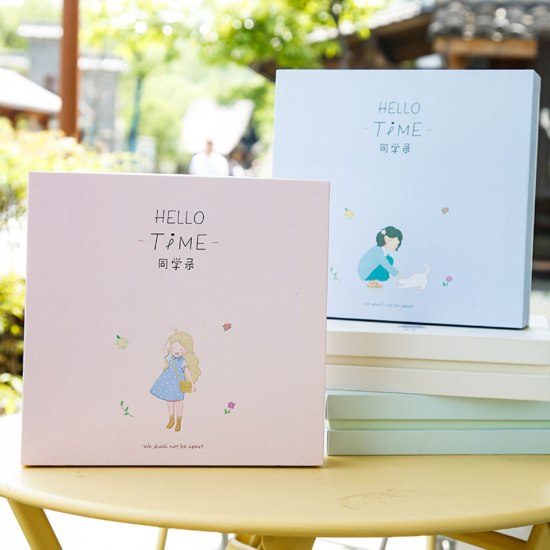 Hello Time Graduation Commemorative Album Gift Box Students Graduation Commemorative Album of male and female creative minimalism Lovely commemorative message books Iron Clips Loose-leaf Meritocratic Girl's Heart Hand Ledger Memoirs