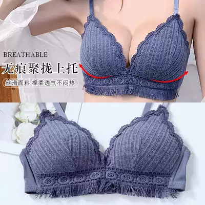 Cat man underwear Women's rimless small chest gathered bra flat chest thickened girl incognito upper breast women's bra
