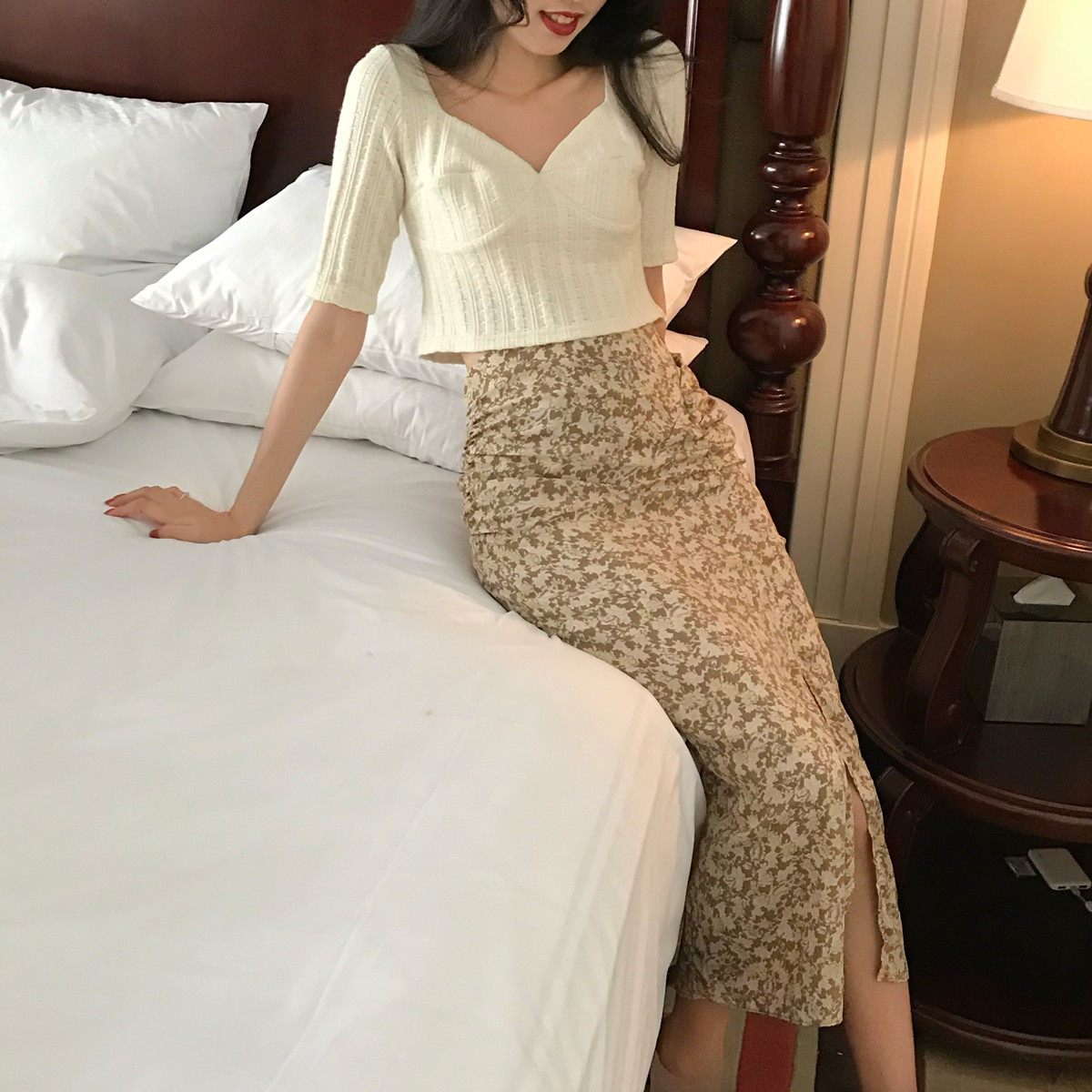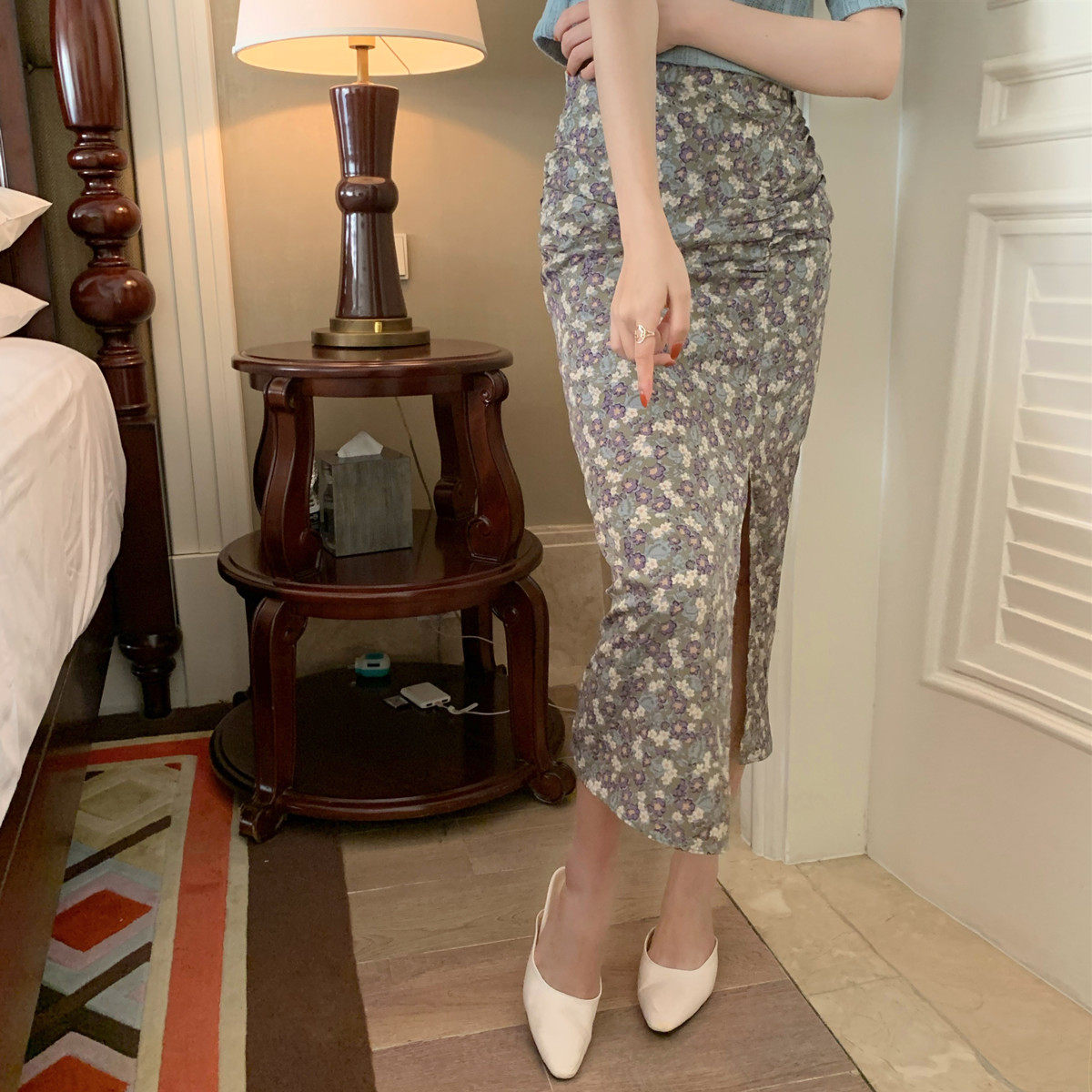 SYT School Flowers must be sexy opening fork Chopped Flowers Half Body Skirt Woman Summer New High Waist Retro Irregular Dresses