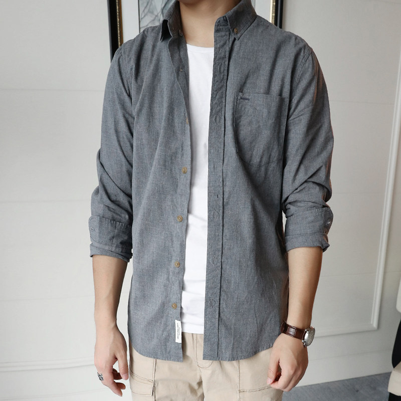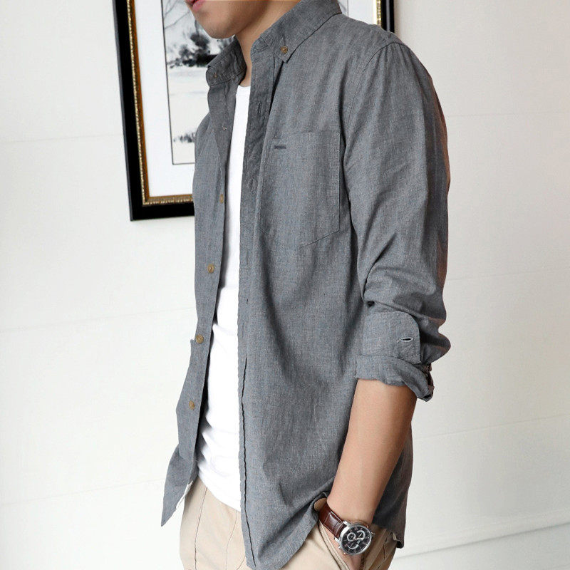 Men's Long Sleeve Shirt Summer New Gray Fixed Business Free Shirt Pure Cotton Fashion Fashion