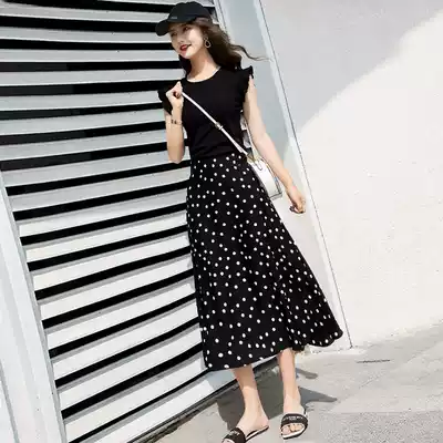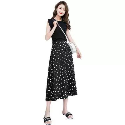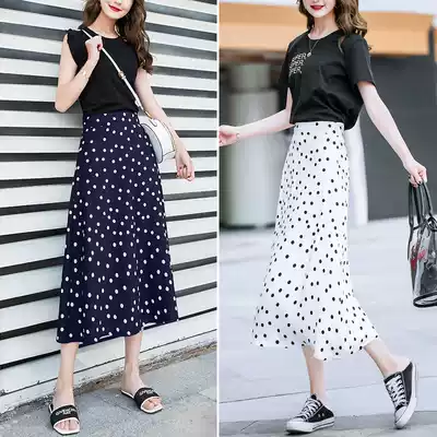 Polka dot skirt female 2021 new summer thin section suitable for crotch width chiffon small floral spring and autumn long skirt