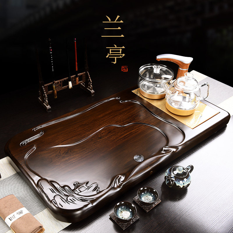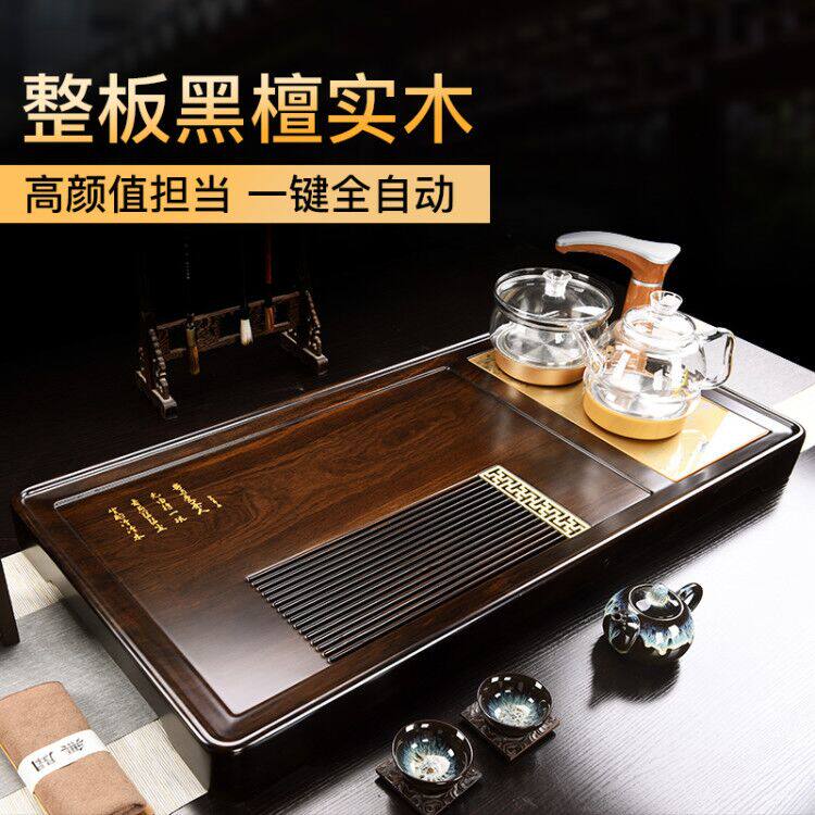 Ebony tea tray set with automatic induction cooker integrated high-grade household simple solid wood tea set