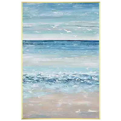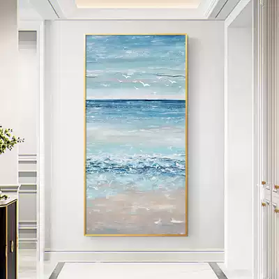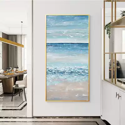 Sea landscape abstract painting hand-painted porch oil painting modern simple living room decoration painting Nordic light luxury vertical hanging painting