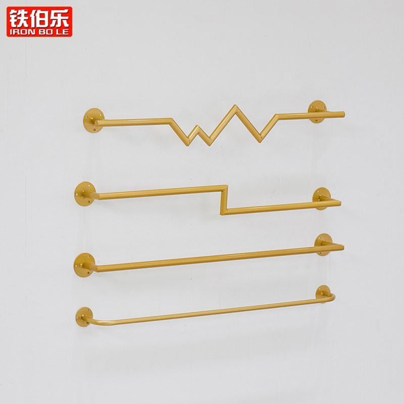 Clothing store display rack on the wall Children's clothing shelves Women's store wall hangers gold display rack crossbar hanging point hook
