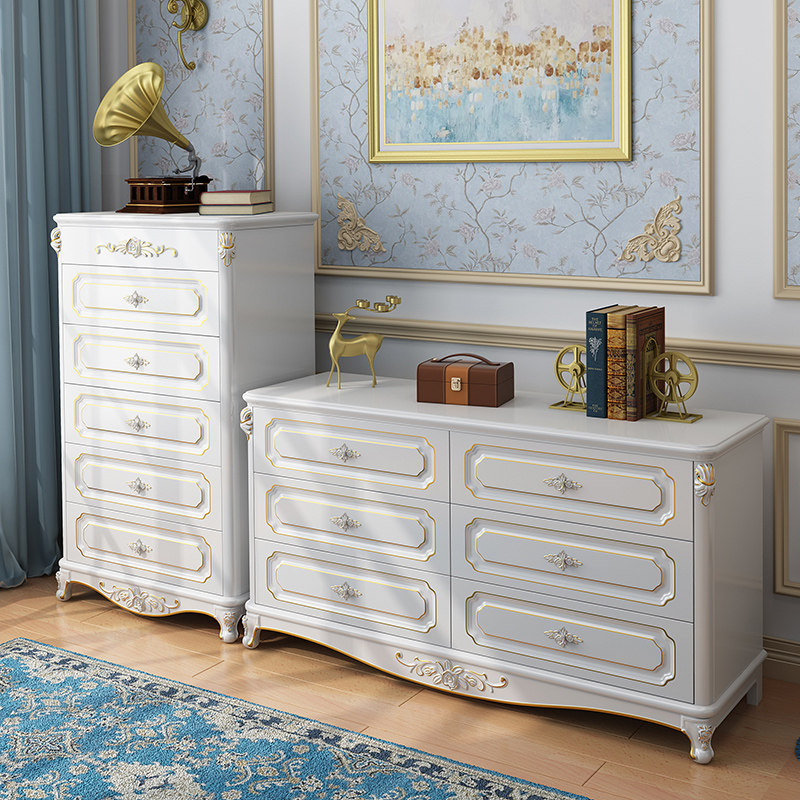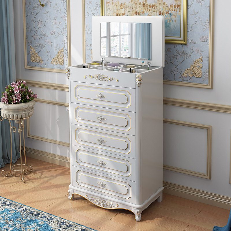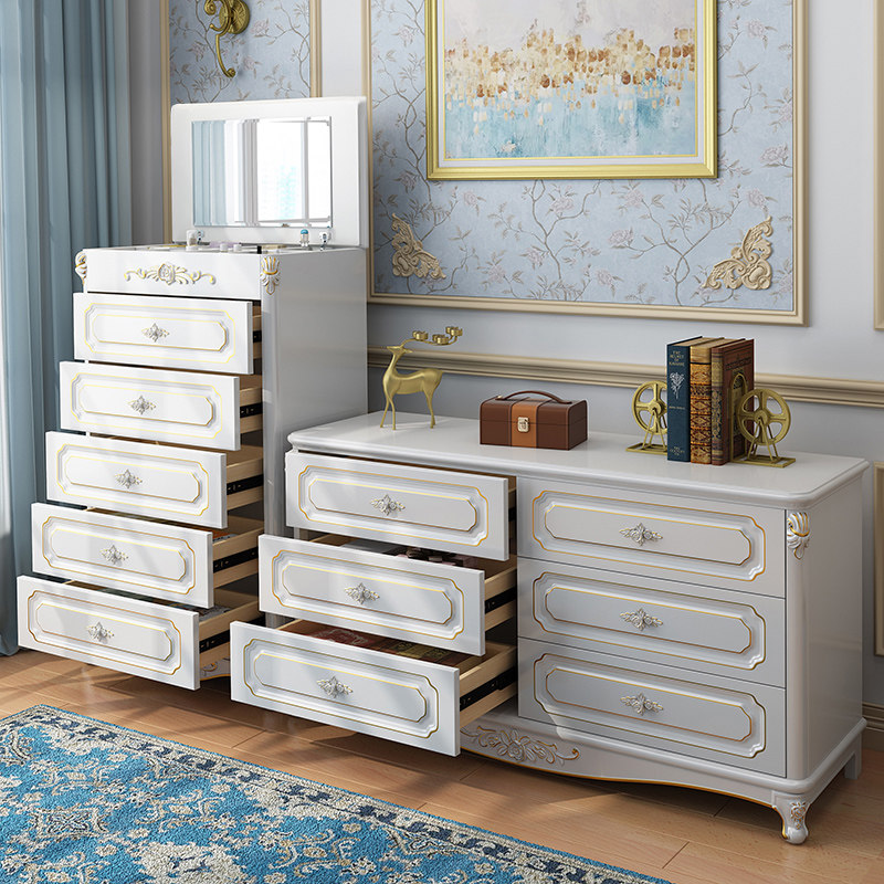 European-style chest of drawers six-drawer chest of eight drawers simple modern with makeup mirror locker bedroom solid wood drawer cabinet